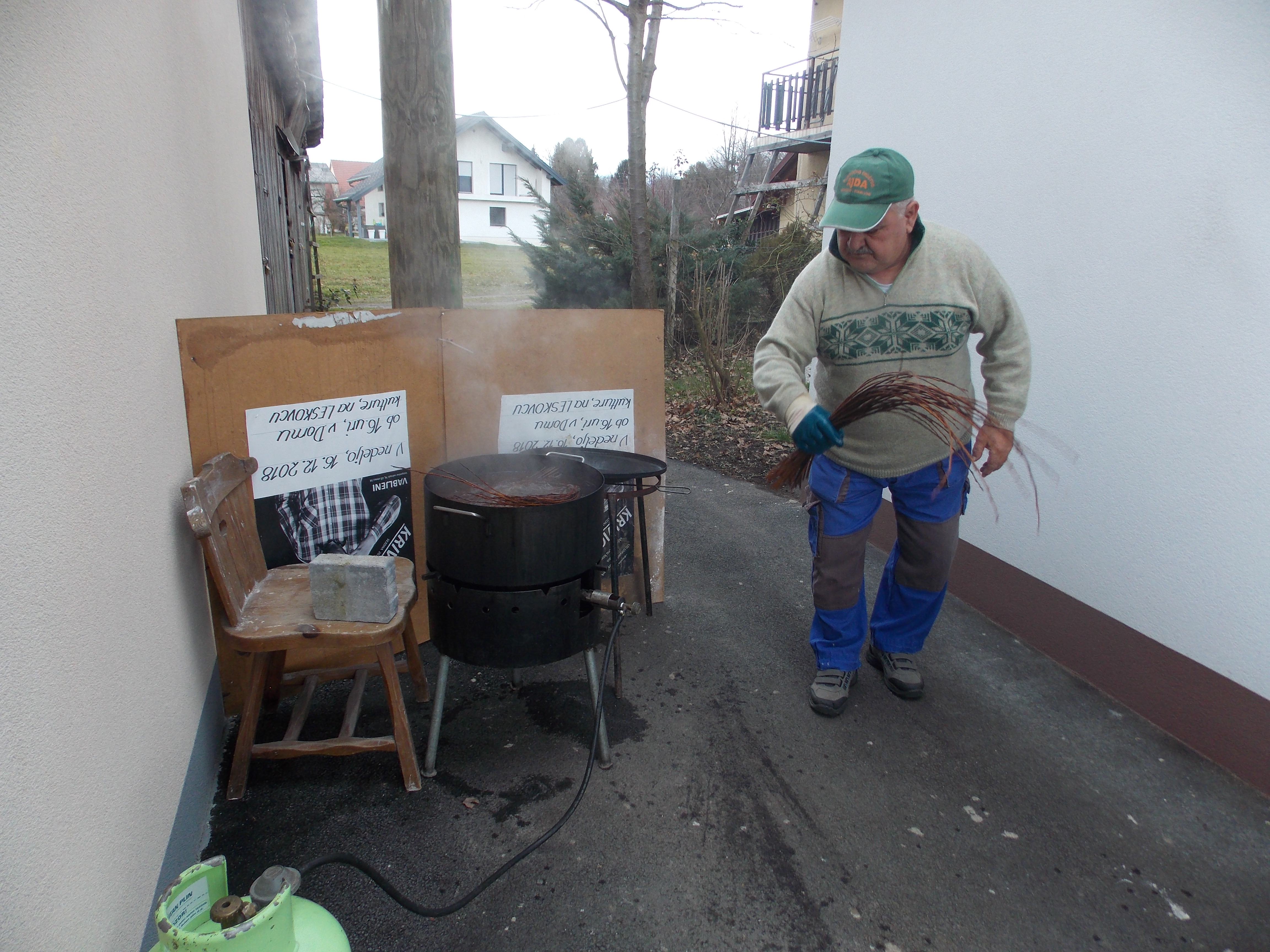 Seveda pa brez pomoči mentorja in ostalih članov, ki so pripravljali šibe, ne bi šlo. Imeli so se lepo, saj je bilo bistvo delavnic tudi druženje v teh mrzlih zimskih dneh.
