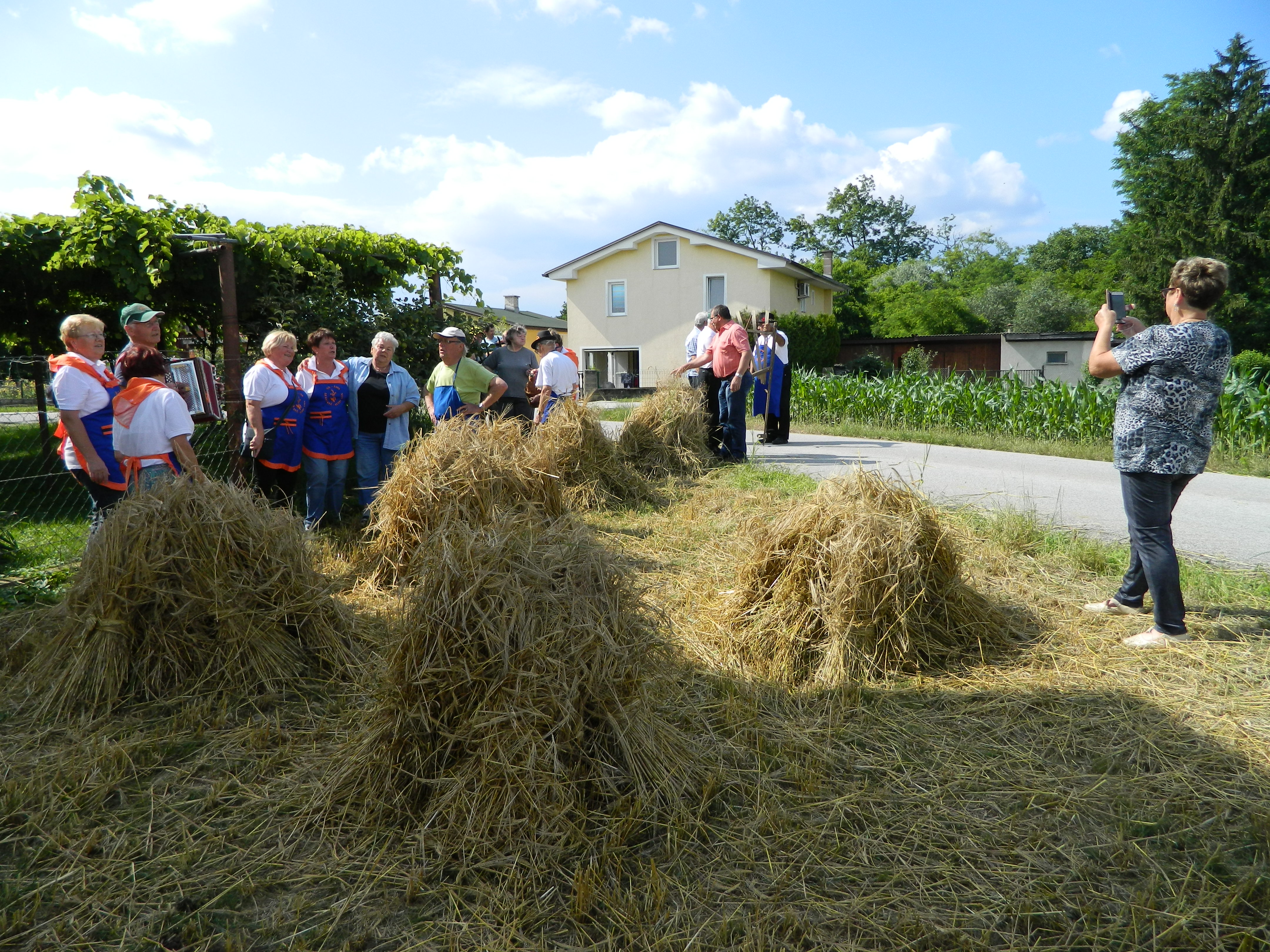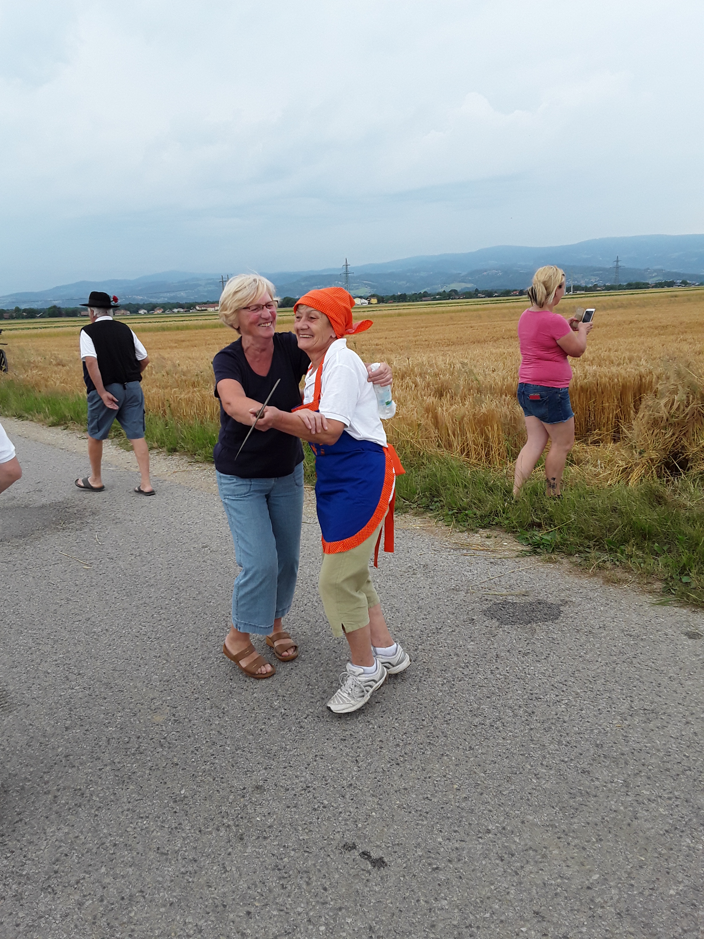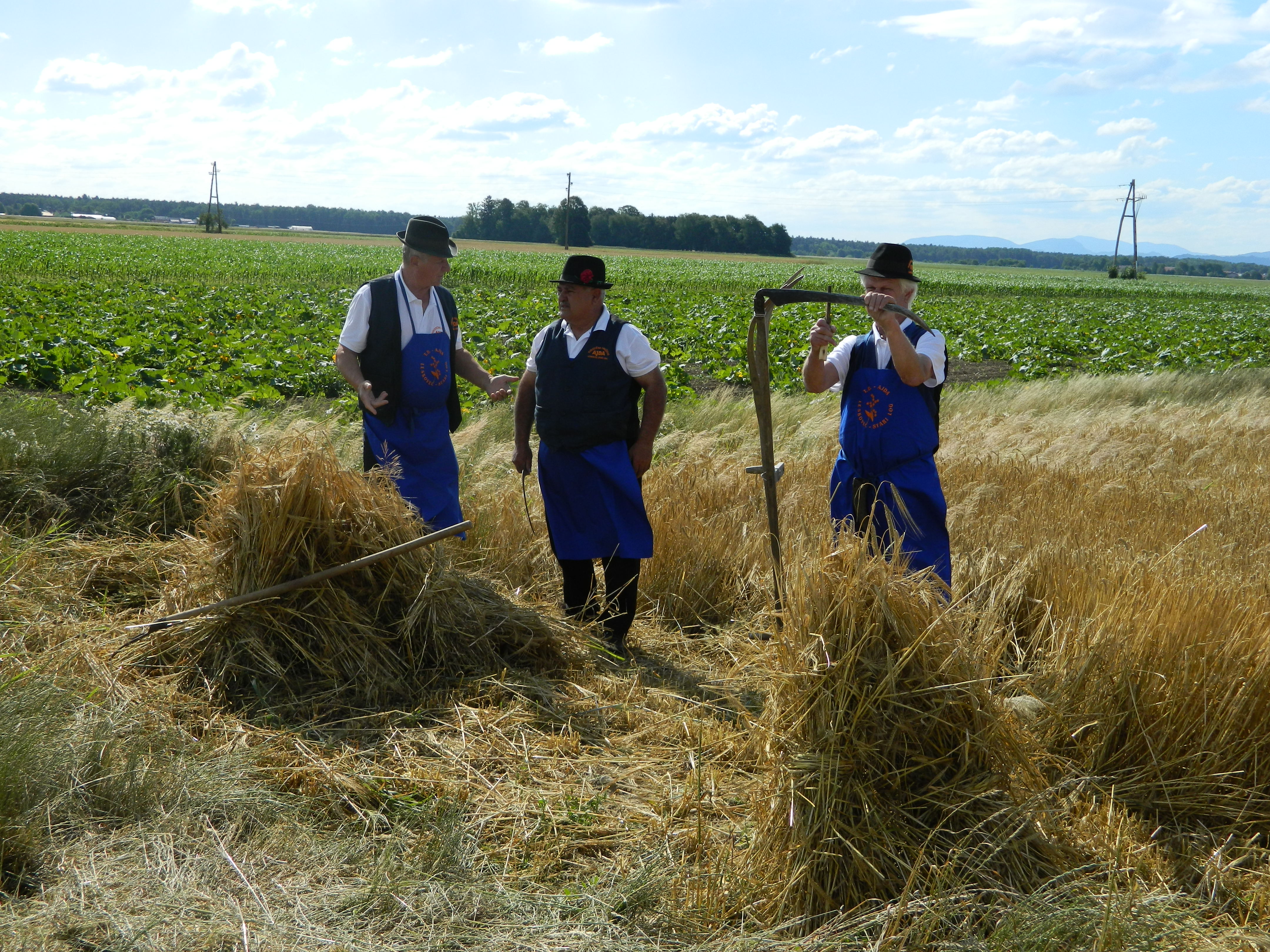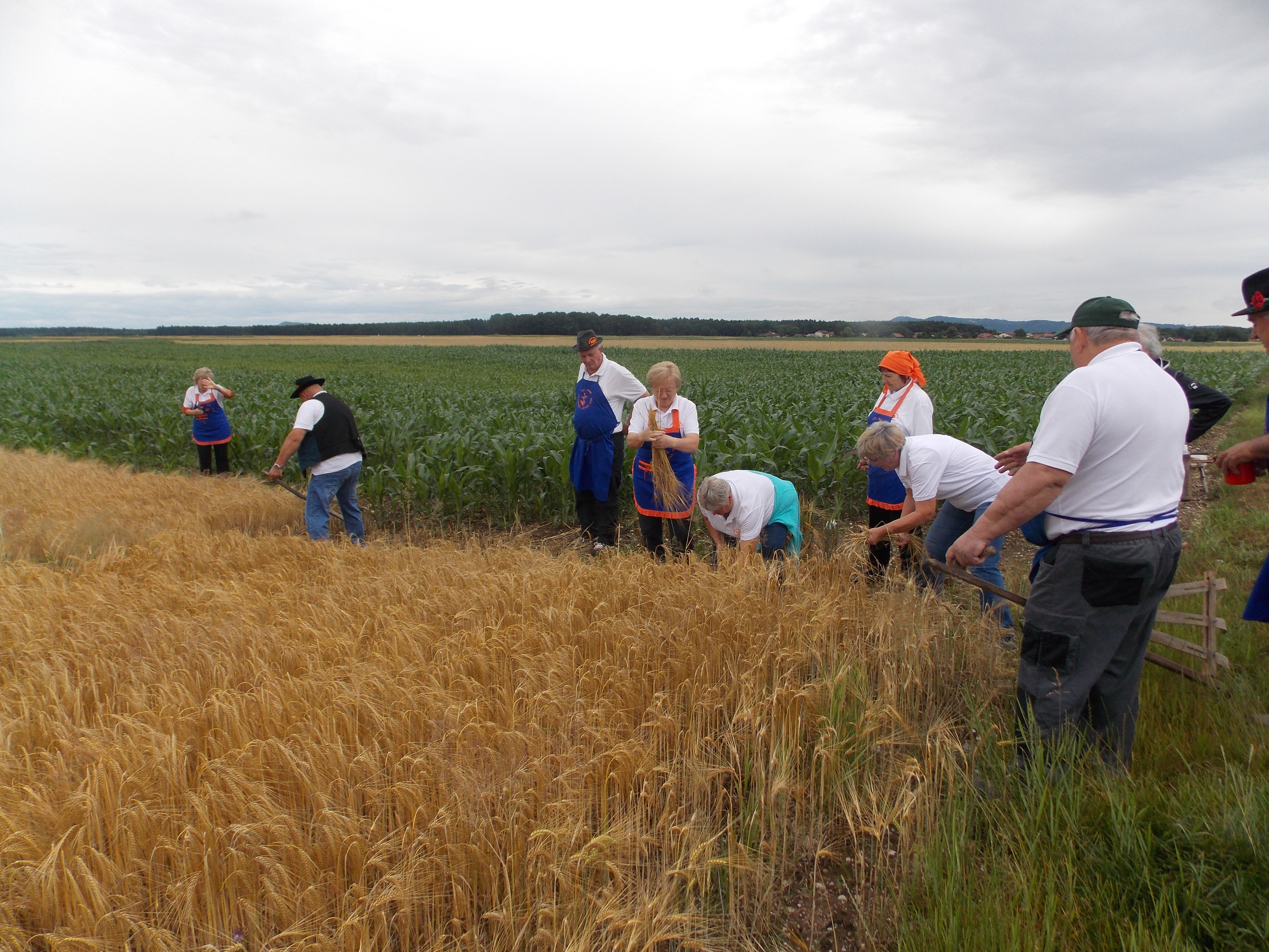Člani društva AJDA smo 18.6.2017 pripravili prikaz žetve žita po starem običaju. Zbrali smo se na njivi in si razdelili delo. Moški so kosili, ženske so s srpi pobirale klasje in ga vezale v snope, ki smo jih postavili v kopice, da se je zrnje še bolj posušilo.