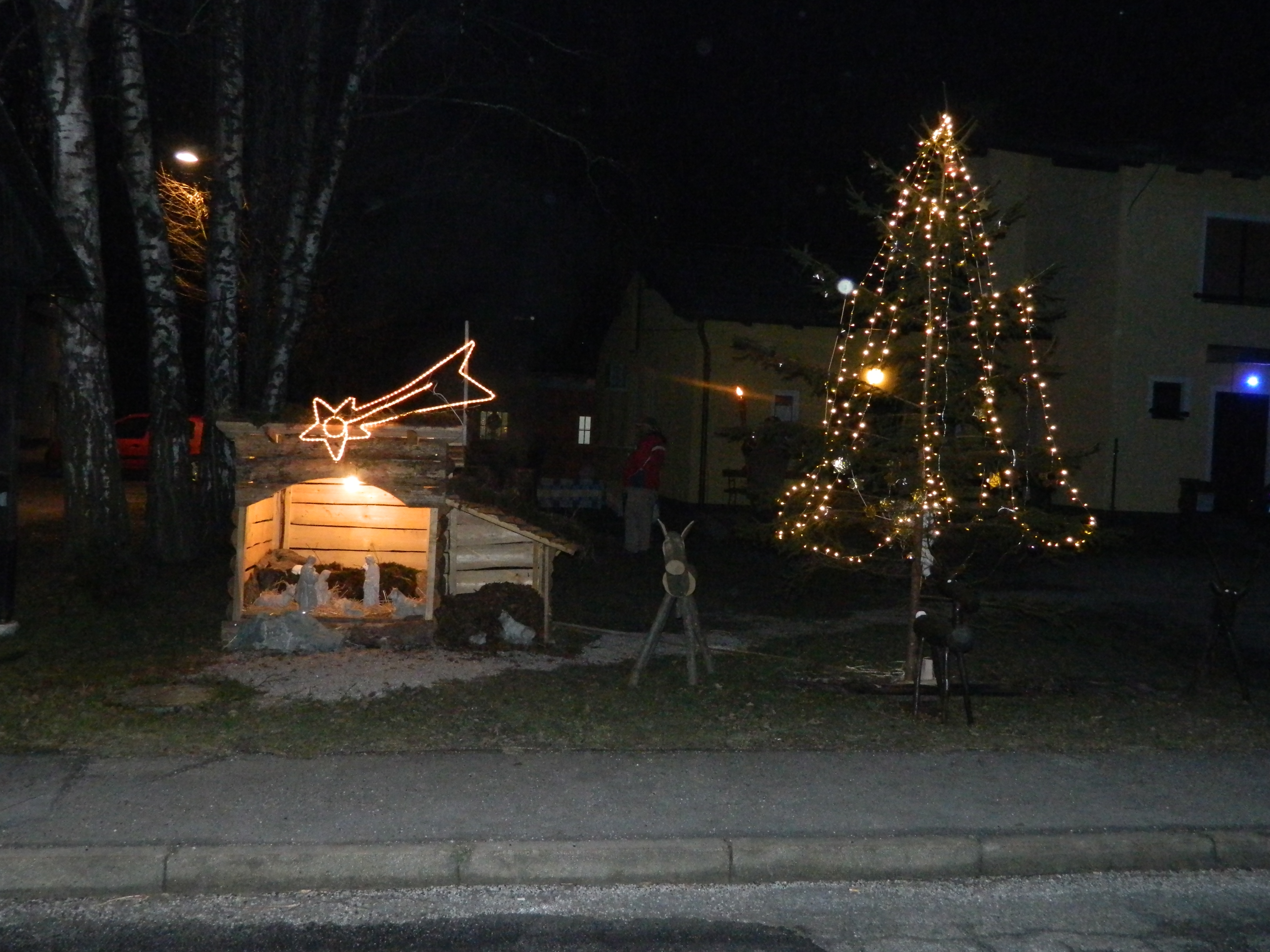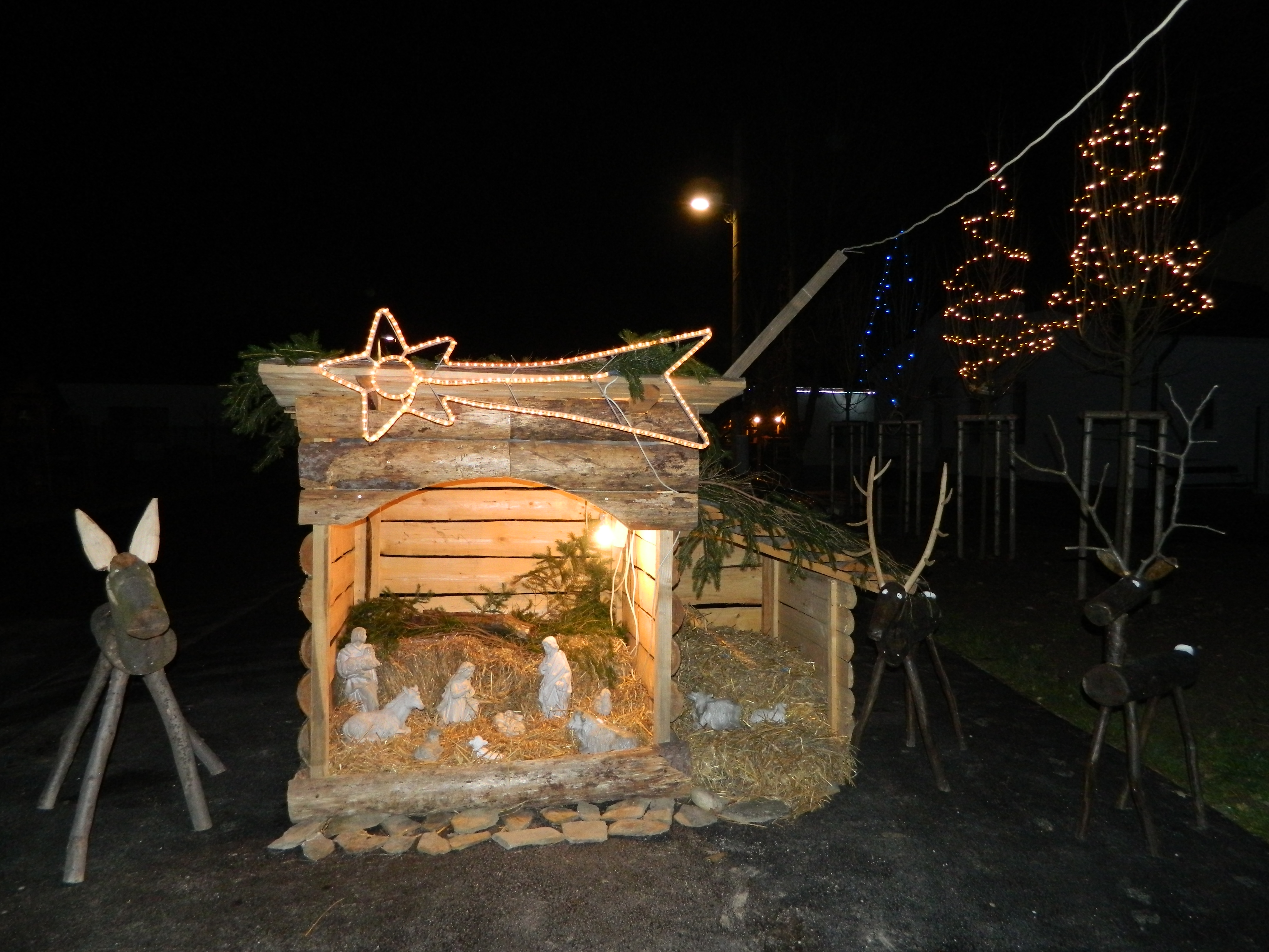 Naše društvo je že drugo leto pripravilo jaslice in tretje leto na božični večer pohod z baklami na Črešnjevec k polnočnici.