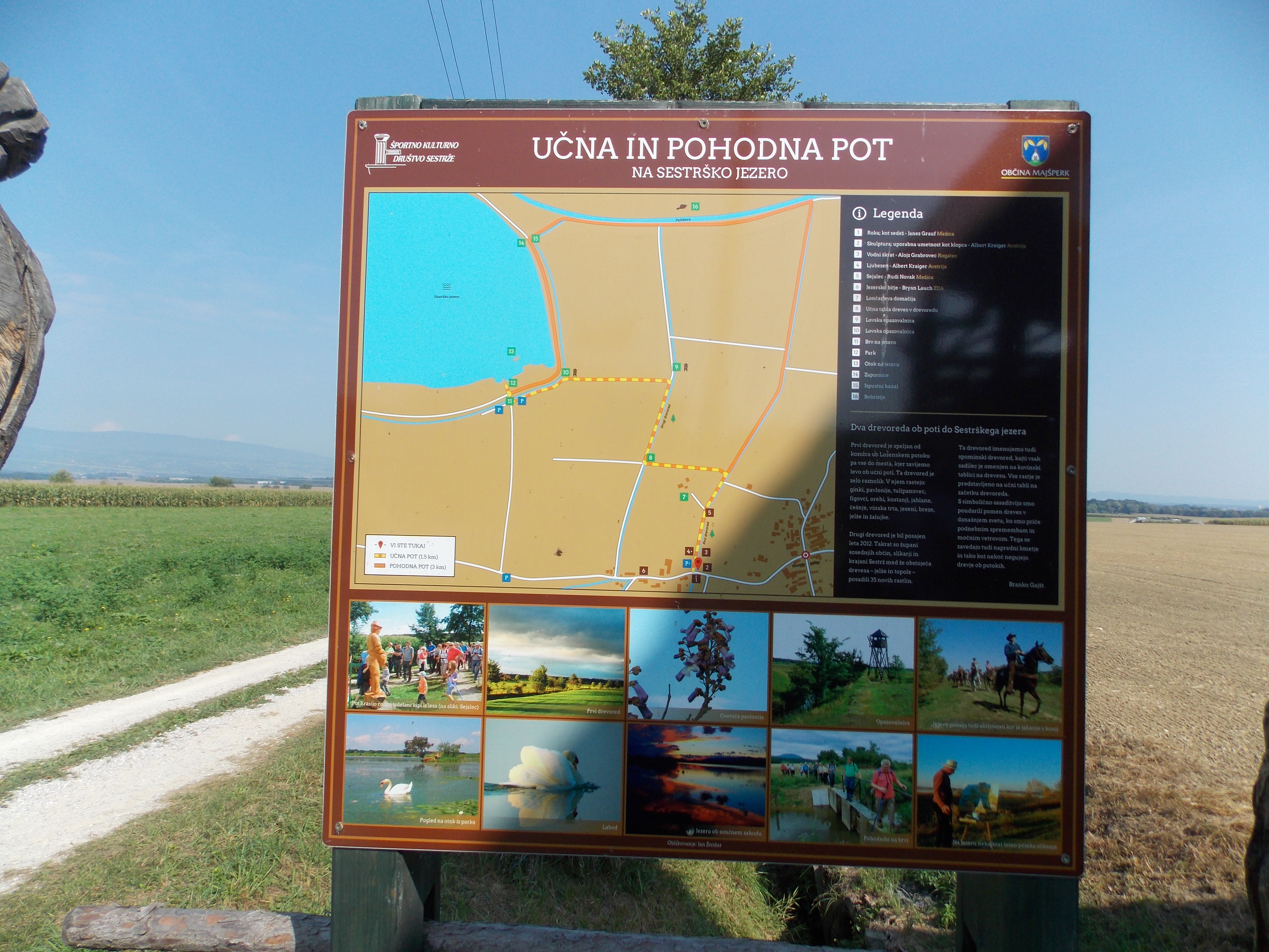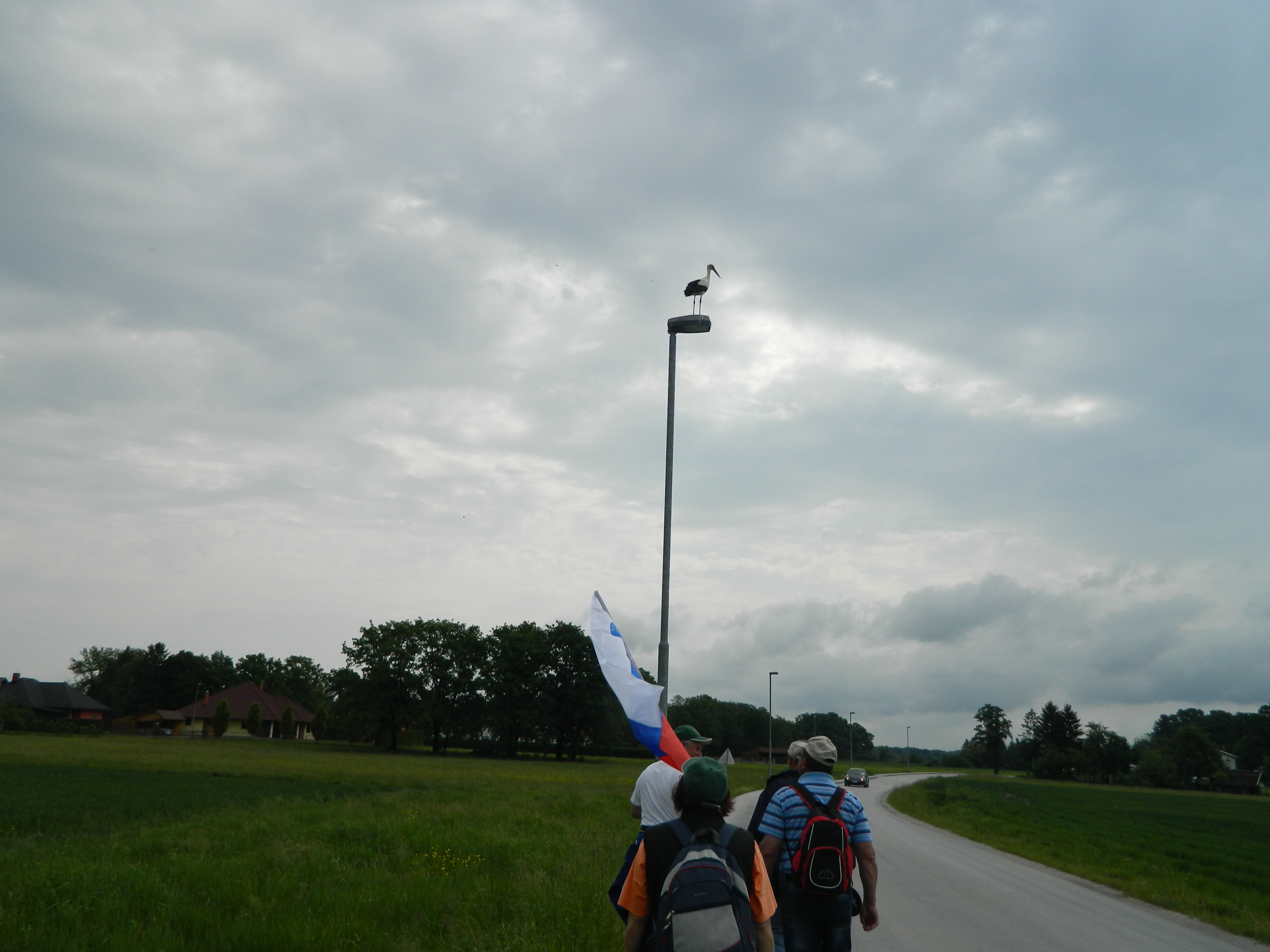 Po kratkem postanku smo nadaljevali pot ob drevoredu, ki ga na novo urejajo krajani in so zasajena res zanimiva drevesa. Nato smo se sprehodili med polji in kaj kmalu prispeli do jezera, kjer je čudovit ambient z lokvanji, labodi in drugimi pticami. Sledilo je »razkuževanje« in krajši počitek, nato pa smo nadaljevali pot nazaj do kozolca.