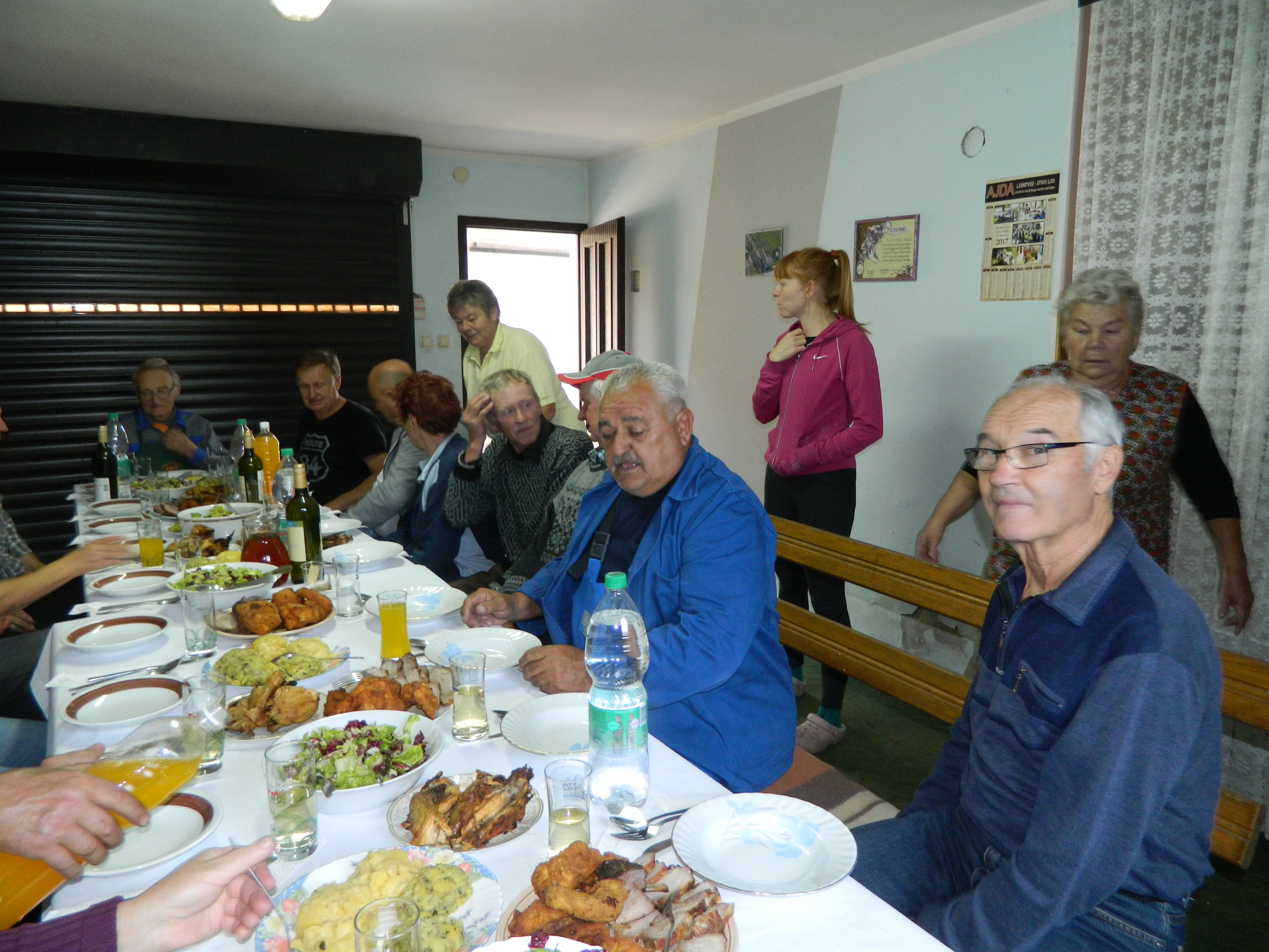 Po vrnitvi smo pripravili pogostitev z odojkom, ki ga je daroval naš predsednik g. Beno Fingušt, s kuhanimi klobasami od naših kolin in hrenovkami. .