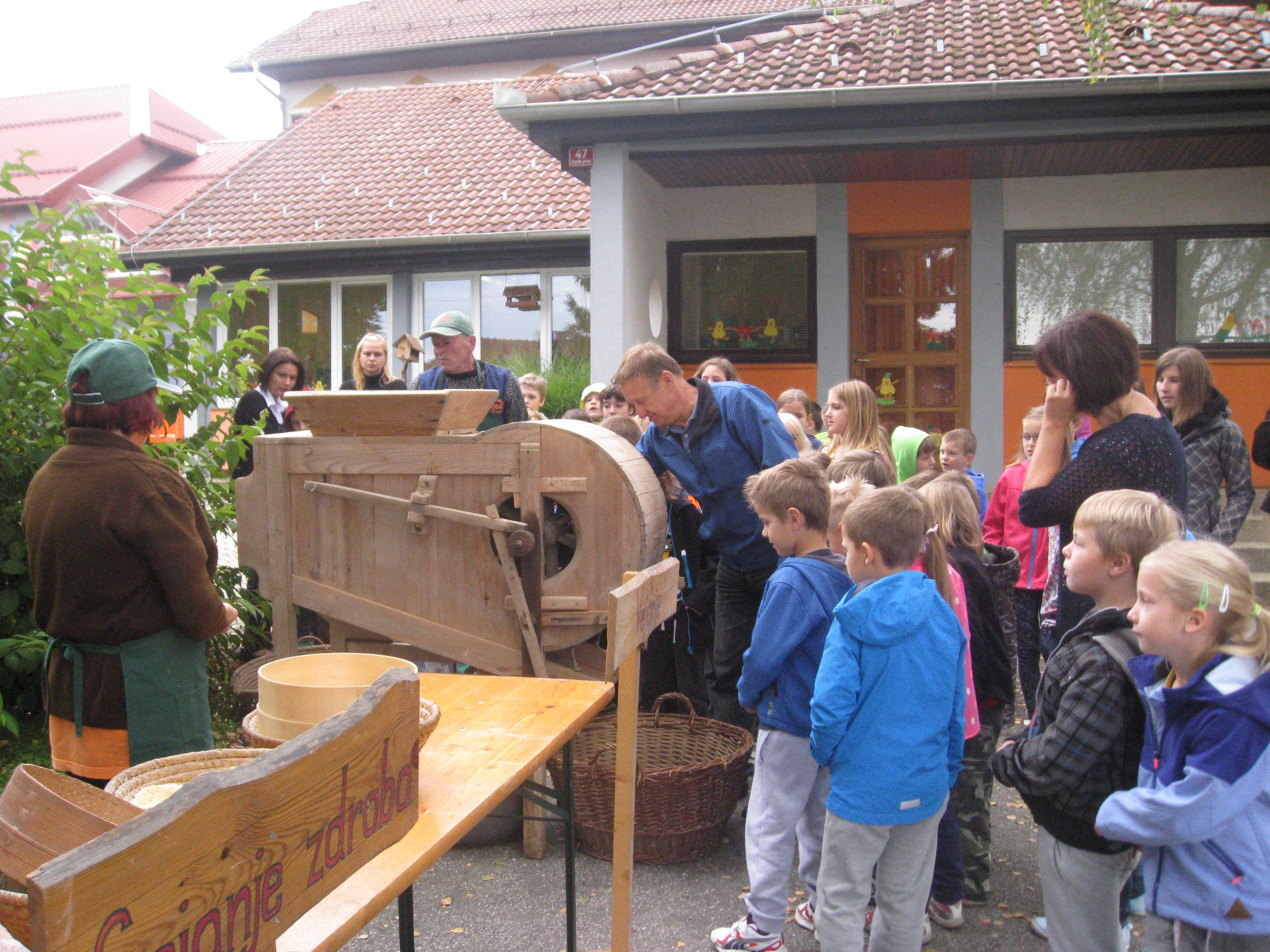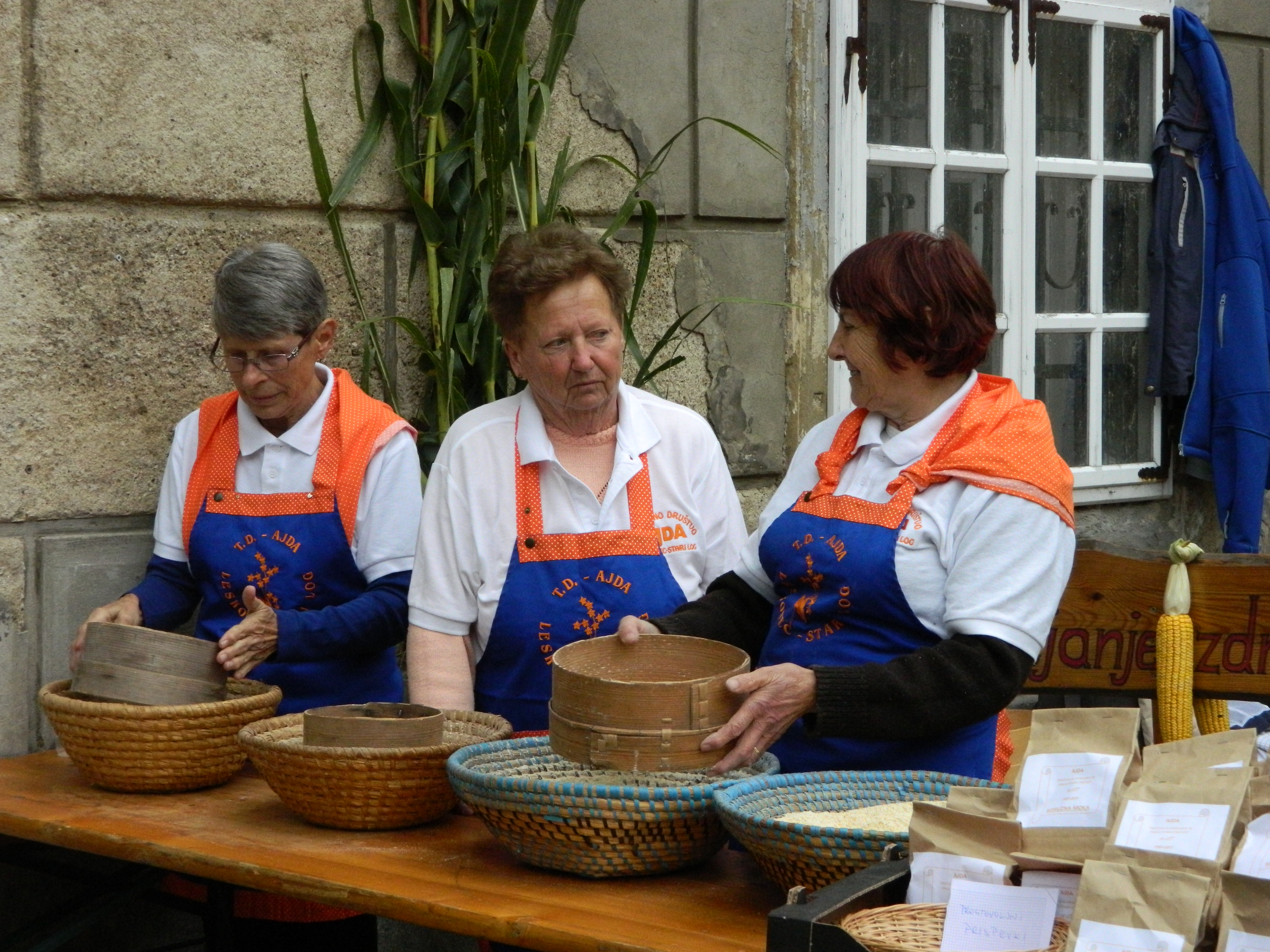 Predstavili smo luščenje, žrmljanje in mletje koruze, kot so to počeli nekoč, da smo dobili moko in koruzni zdrob. Pokazali smo tudi klepanje kose, kovanje in pletenje košar.