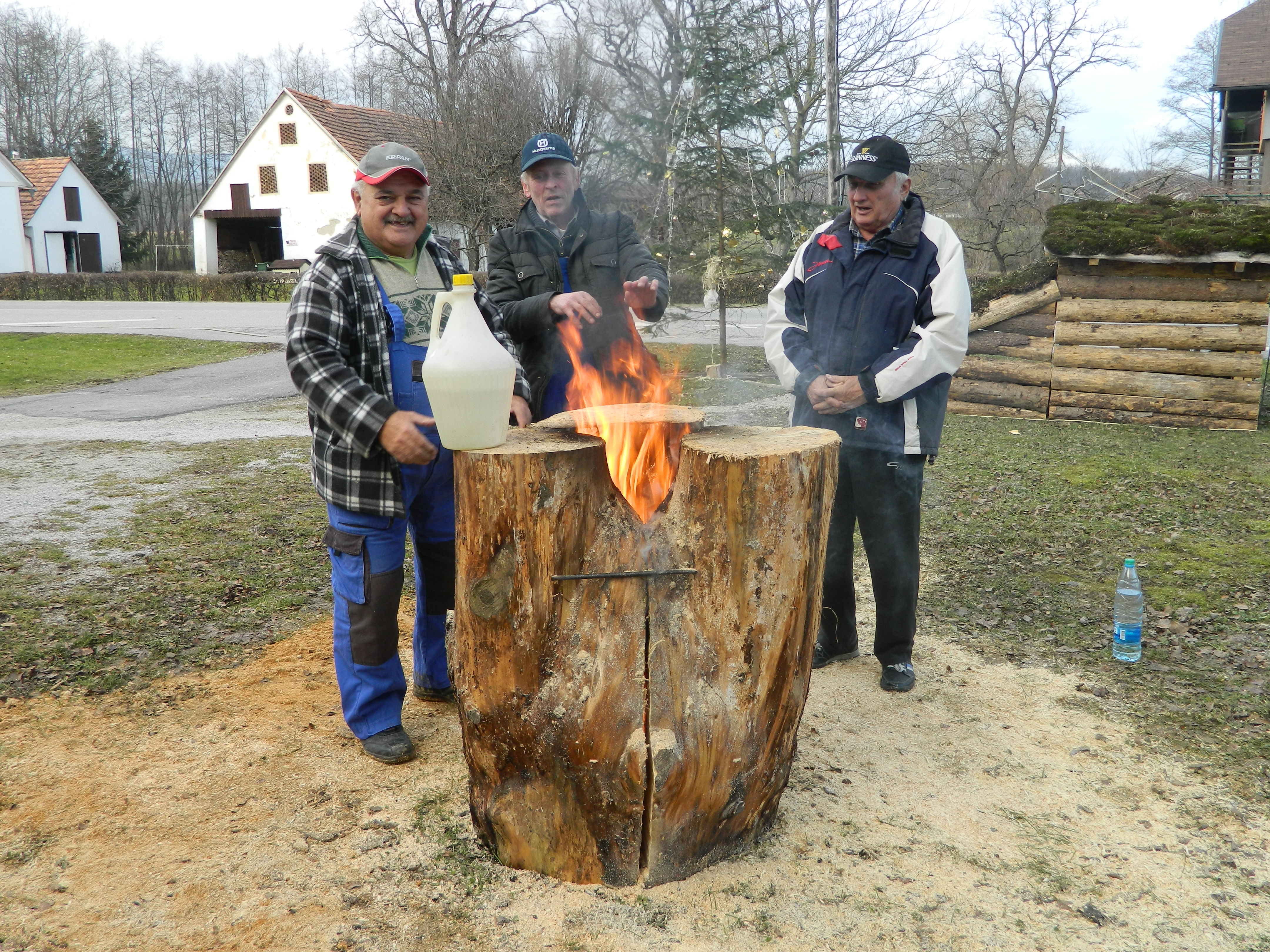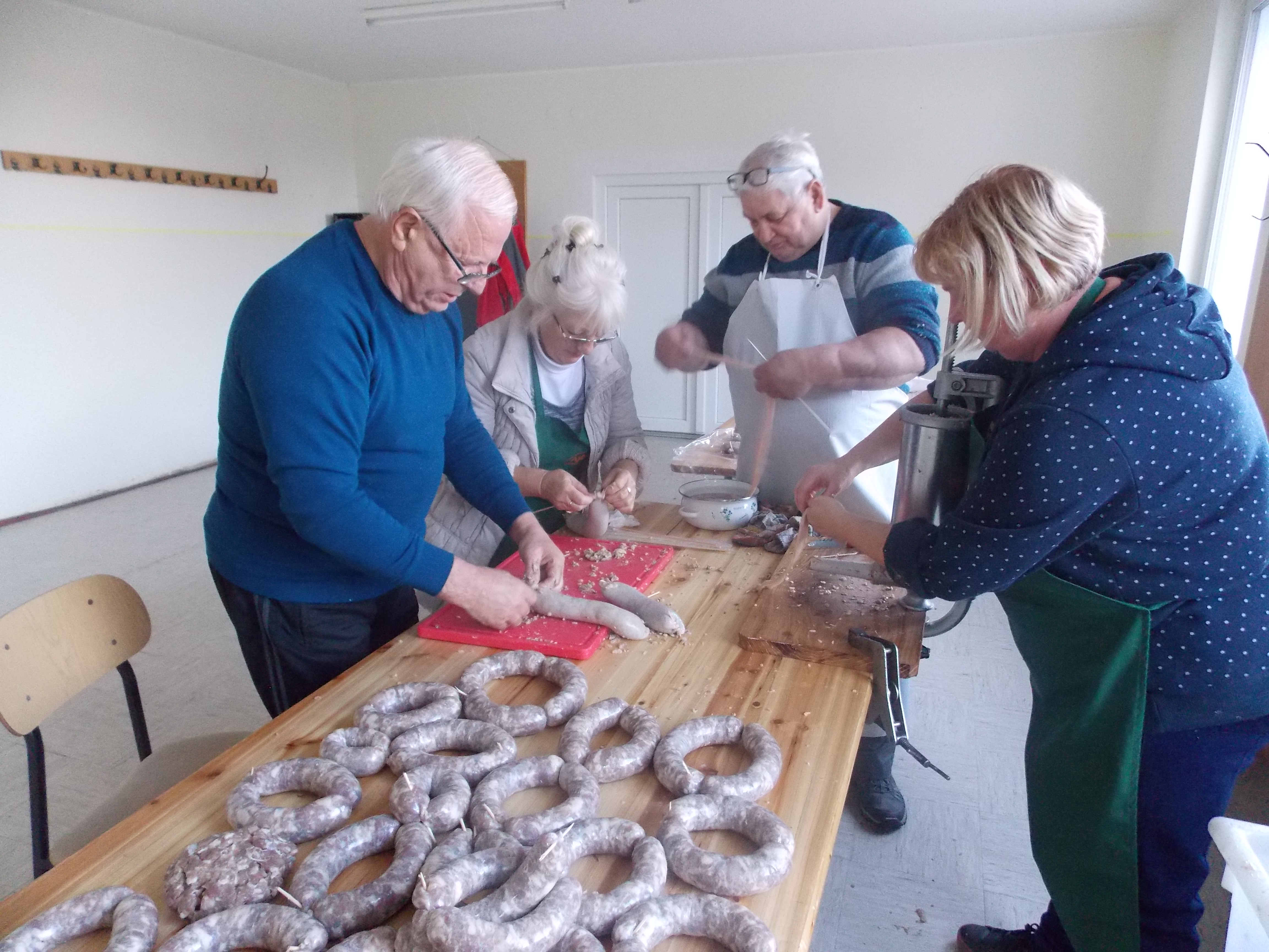 V društvu smo 13.12.2018 priredili koline tako, kot so to počeli naši predniki. Na domačiji Fingušt smo pujsa zaklali, razkosali, naredili kašnate in mesene klobase, pripravili meso za bunke, slanino zmleli za zaseko in ocvirke. Sveže meso smo pospravili v zamrzovalno omaro v naših društvenih prostorih, da bomo imeli zalogo ob naših dejavnostih.