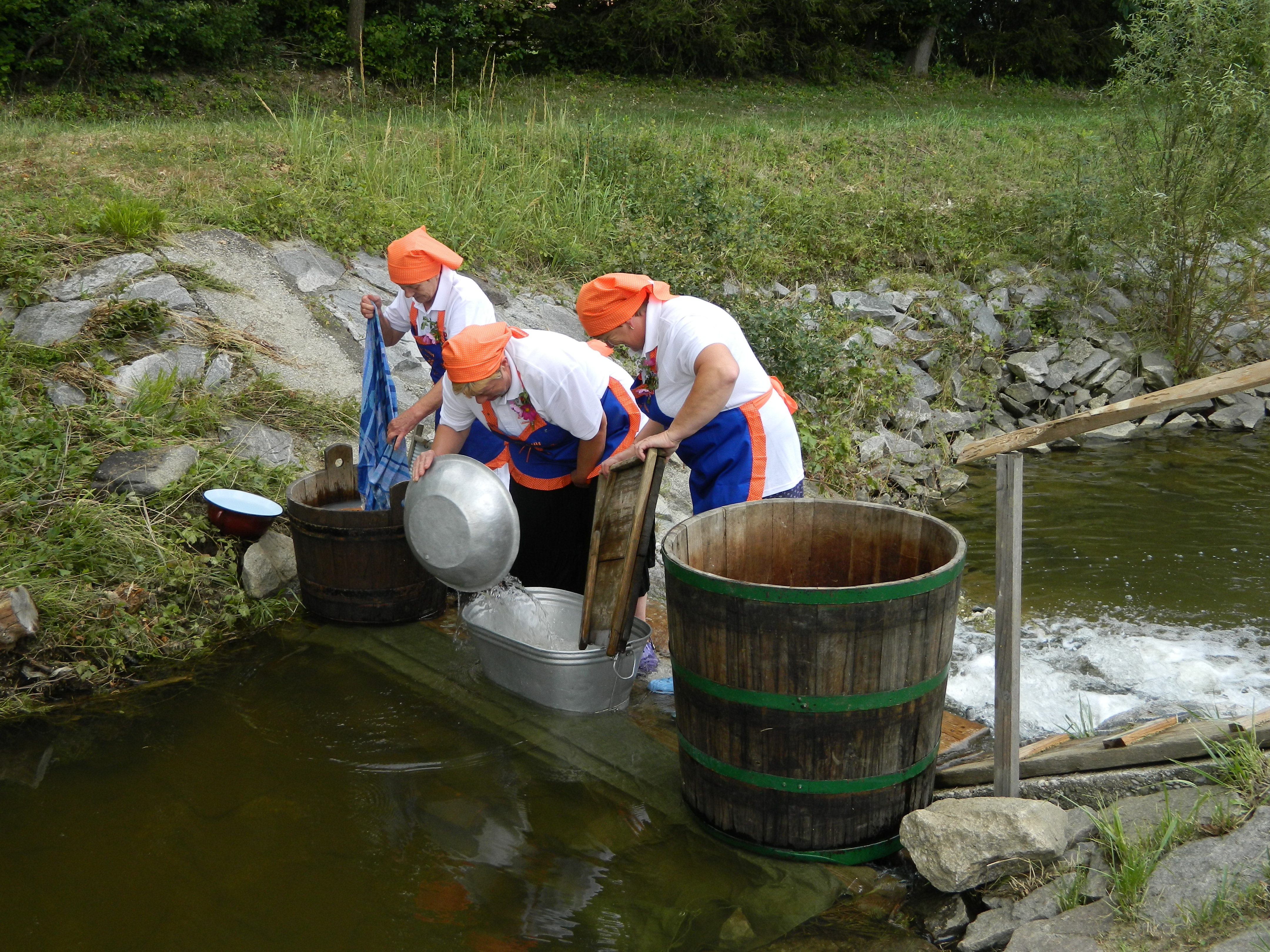 Prikaz pranja perila po starem smo tokrat opravili 15.8.2020 v malo drugačni obliki zaradi »korone«, vendar je bilo kljub temu prijetno. Zbrali smo se kot običajno pri potoku v Leskovcu in oprali nekaj perila z »ribežnom« in milom iz bukovega pepela.