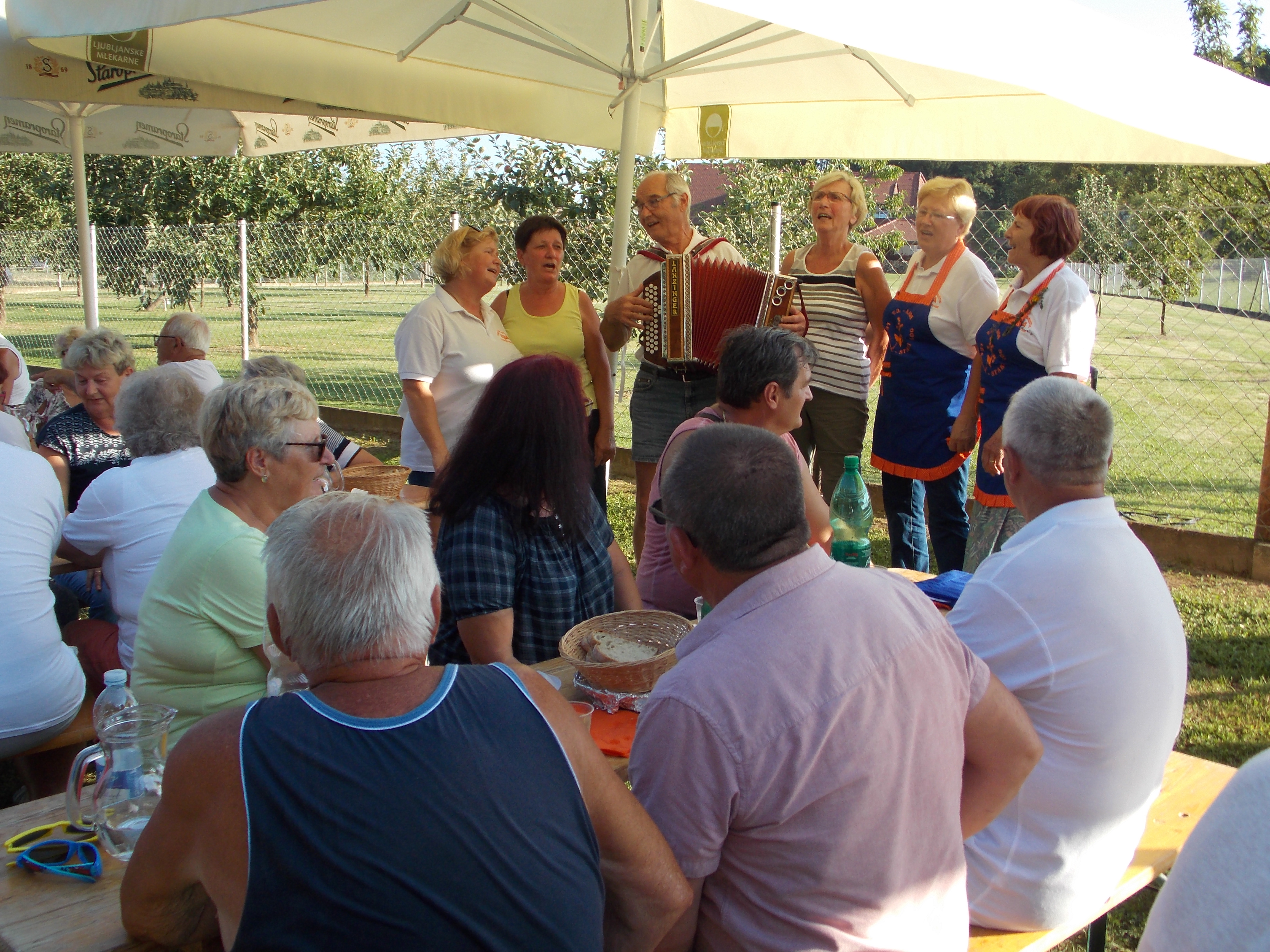 Prireditev je kljub vročemu vremenu potekala v veselem vzdušju, saj smo se ob dobri hrani in pijači, ter ob zvokih harmonike našega Mirka družili še dolgo v večer.