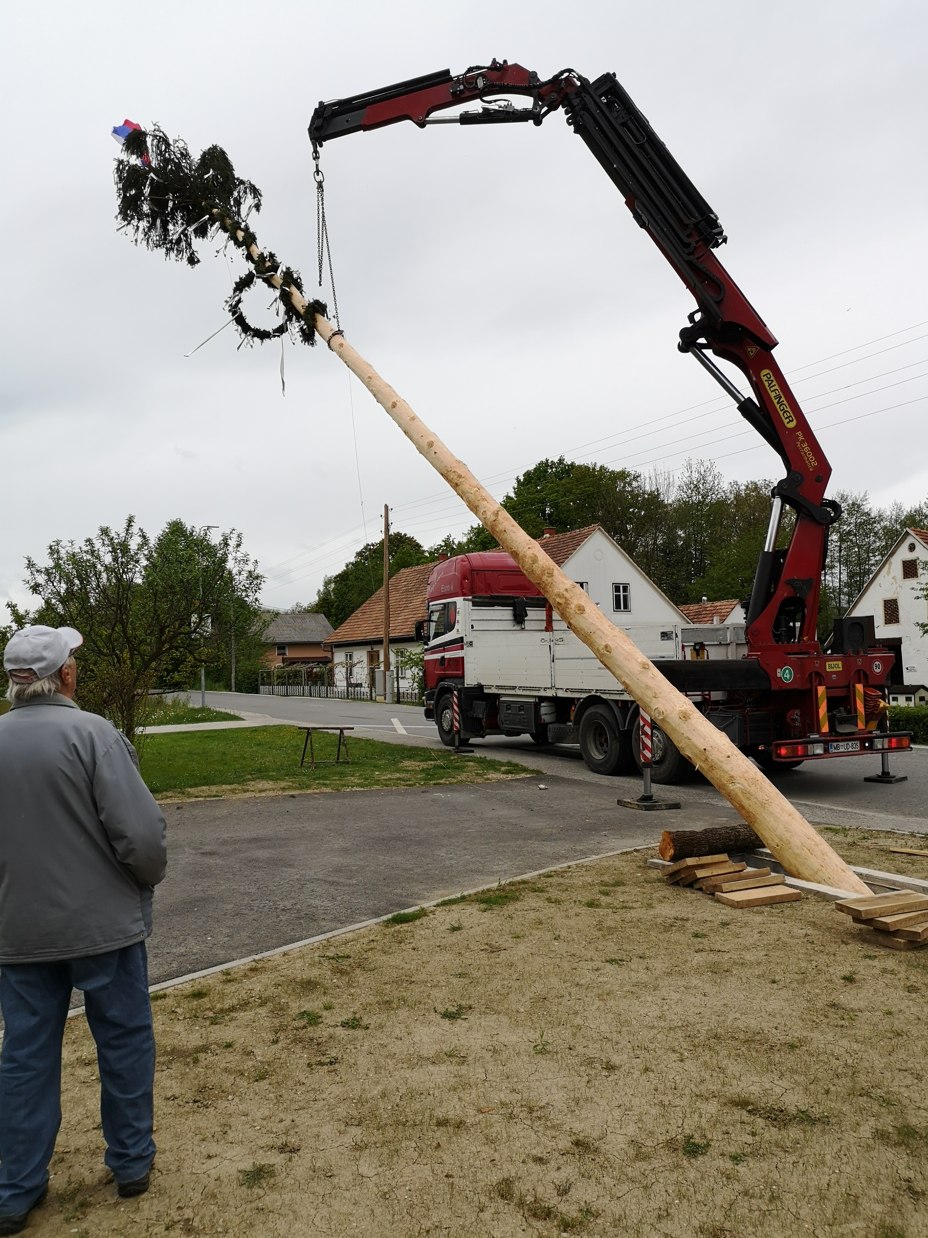 30. aprila pa smo bili v veliko pomoč Krajevni skupnosti pri postavljanju mlaja, saj smo prevzeli organizacijo in tudi pogostitev po dogodku. Tokrat je bilo postavljanje drevesa veliko lažje in varneje, saj smo si pomagali z avtodvigalom.