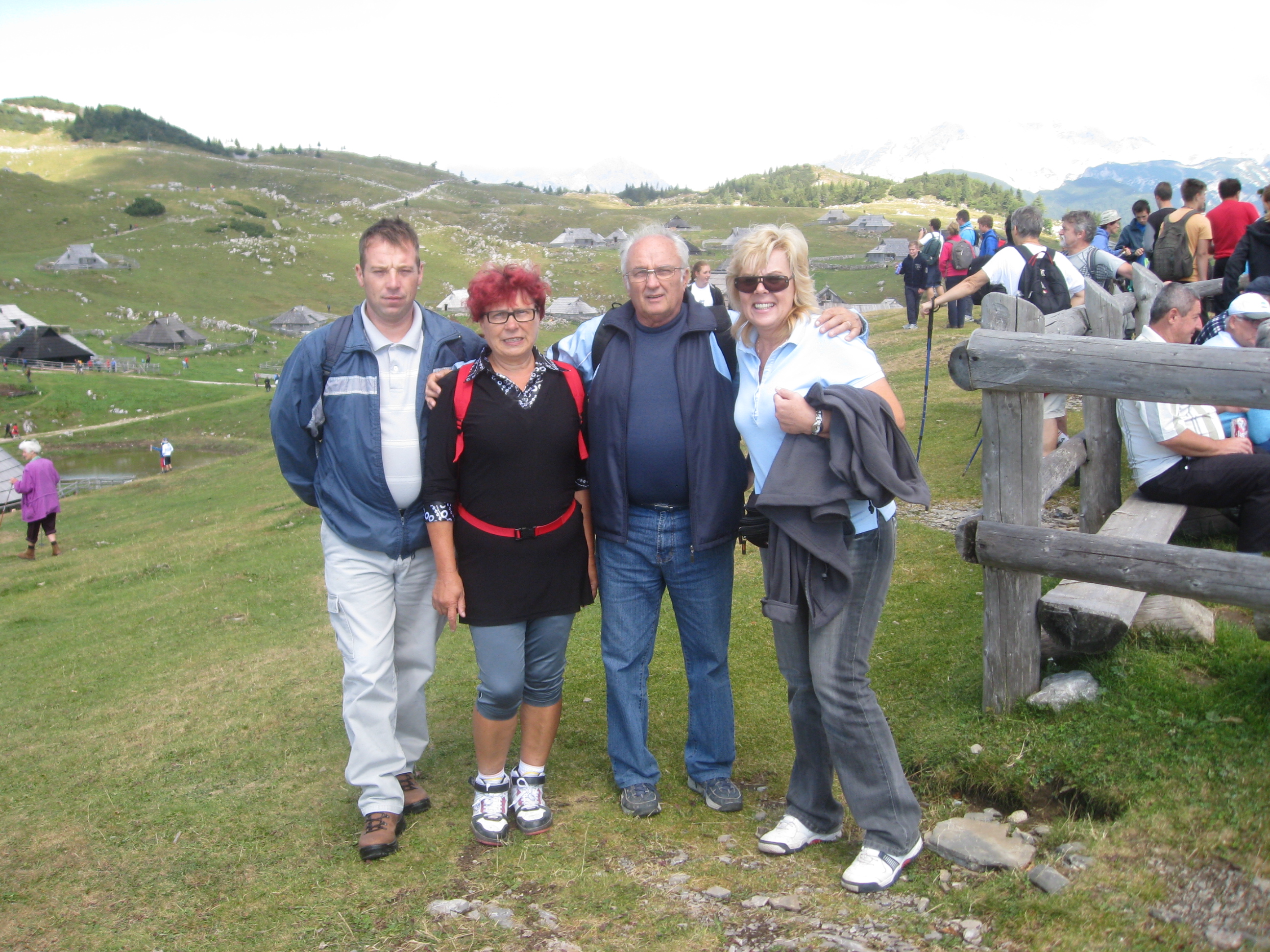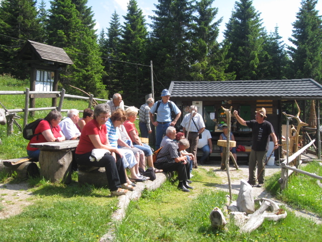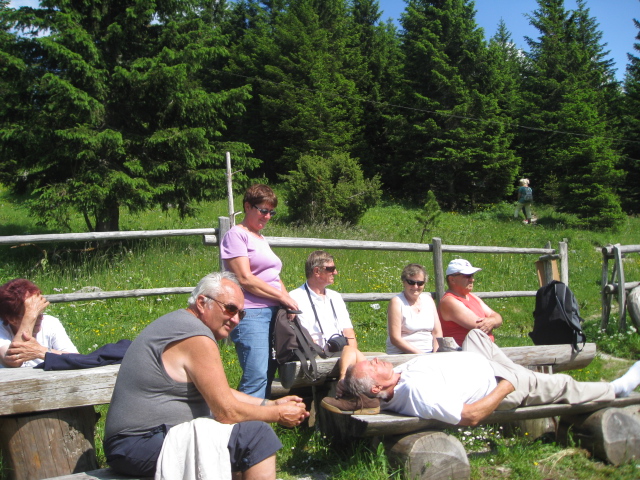 Skupinski posnetek ob prihodu na startno mesto na Pokljuki, kjer je predsednik povedal nekaj vzpodbudnih in zahvalnih misli. Kozarec hladnega piva nam je po dveh dneh potepanja po planinah zelo dobro del.