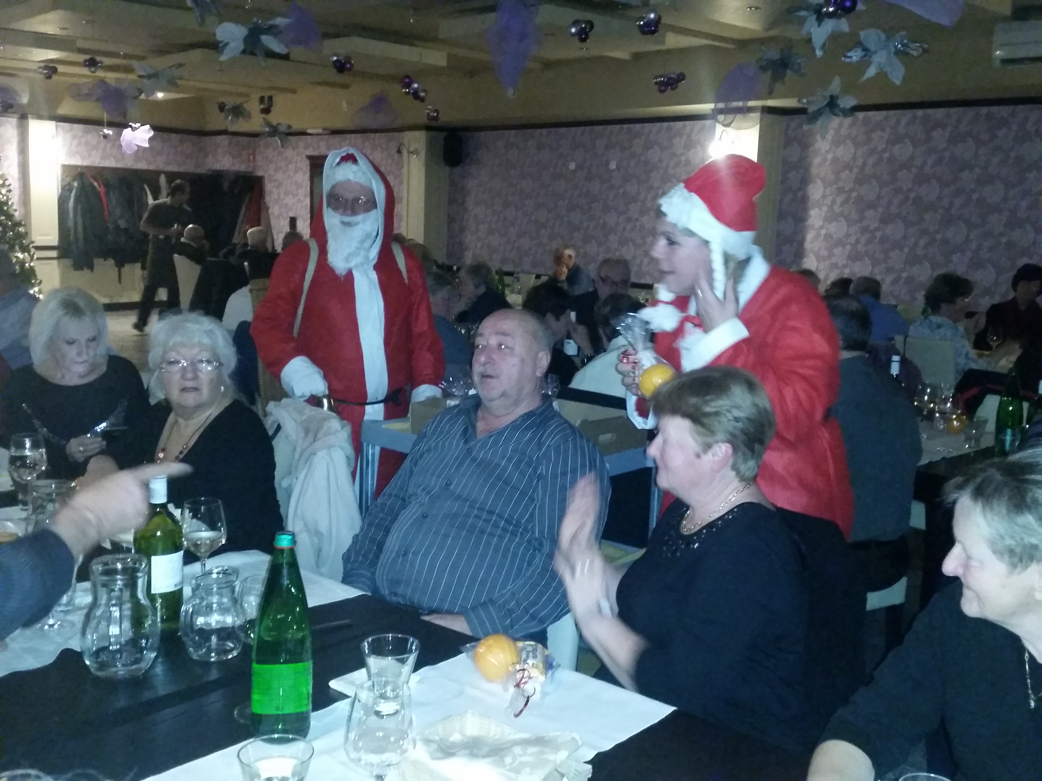 Vendar pa tudi letos ni šlo brez obiska Božička, ker pa je bilo potrebno obdarovati več kot sto udeležencev, mu je tokrat pomagala tudi "gospa Božičkova". V glavnem ob prijetnem druženju čas hitro beži, zato se ob odhodu niso poslavljali, bili so praznično razpoloženi, z željo, da se v letu 2017 spet srečajo na prvi organizirani prireditvi, ob Dnevu žena.