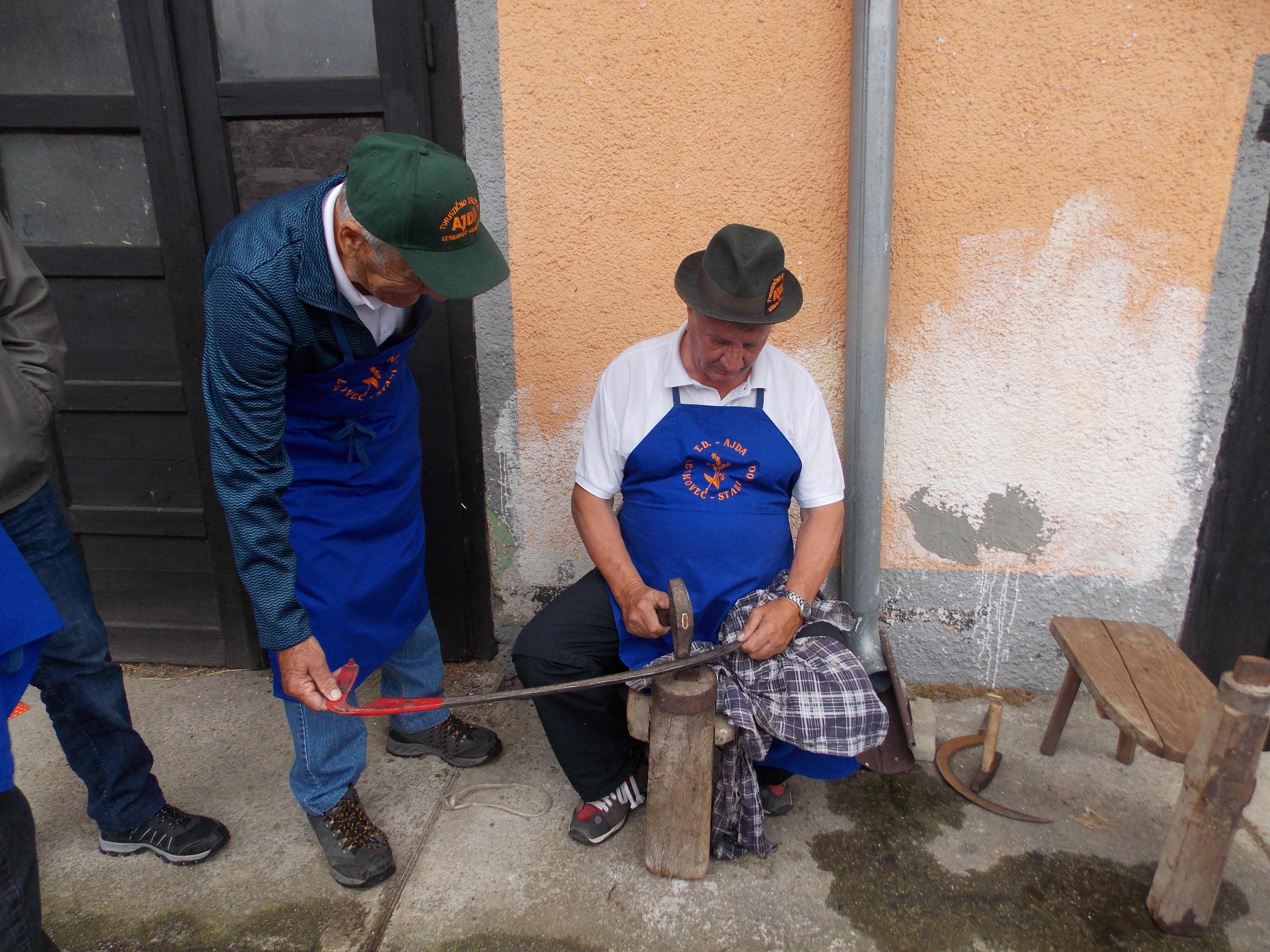 Vmes je bilo potrebno še sklepati kose in nabrusiti srpe, da je bilo delo lažje.