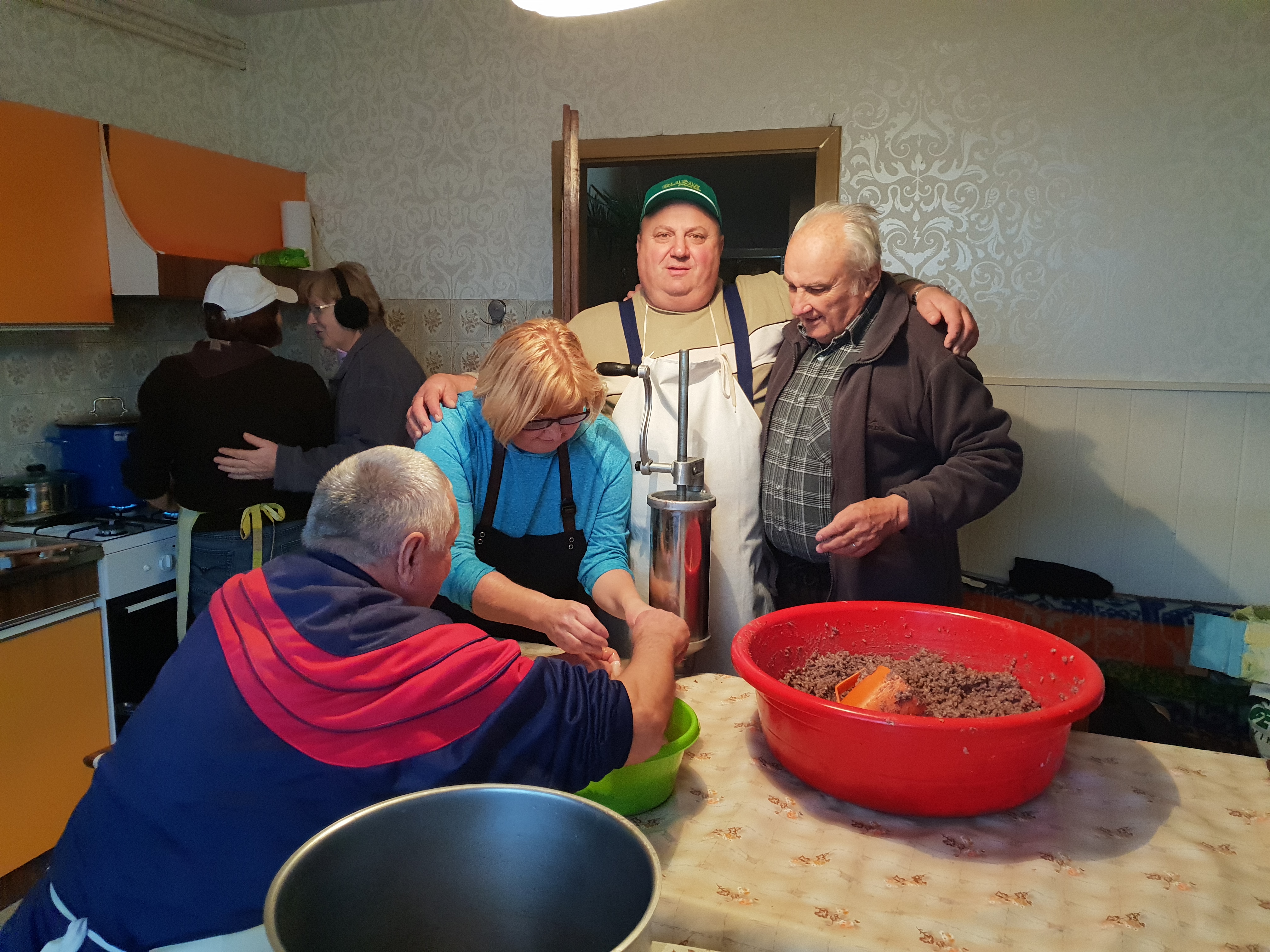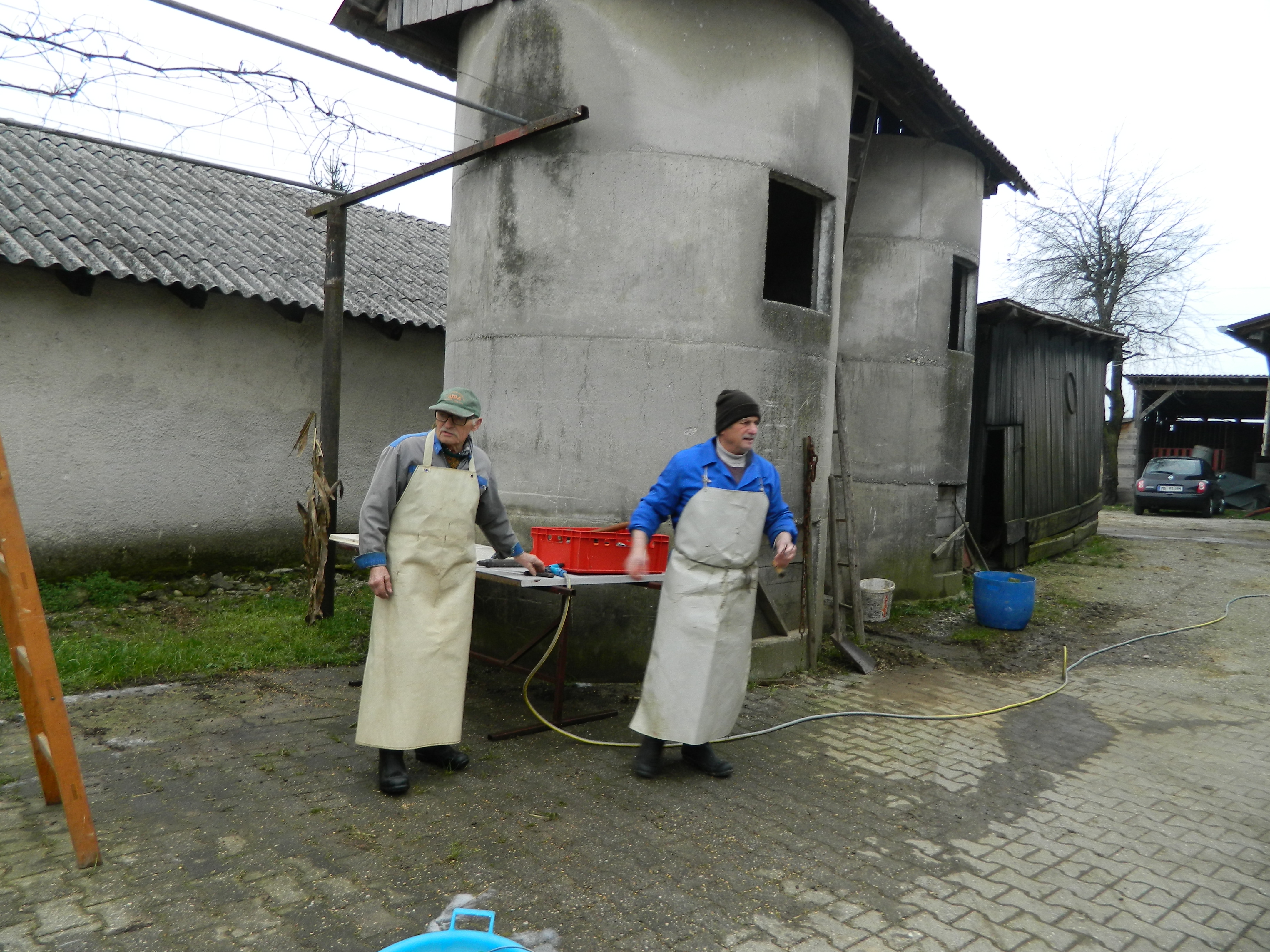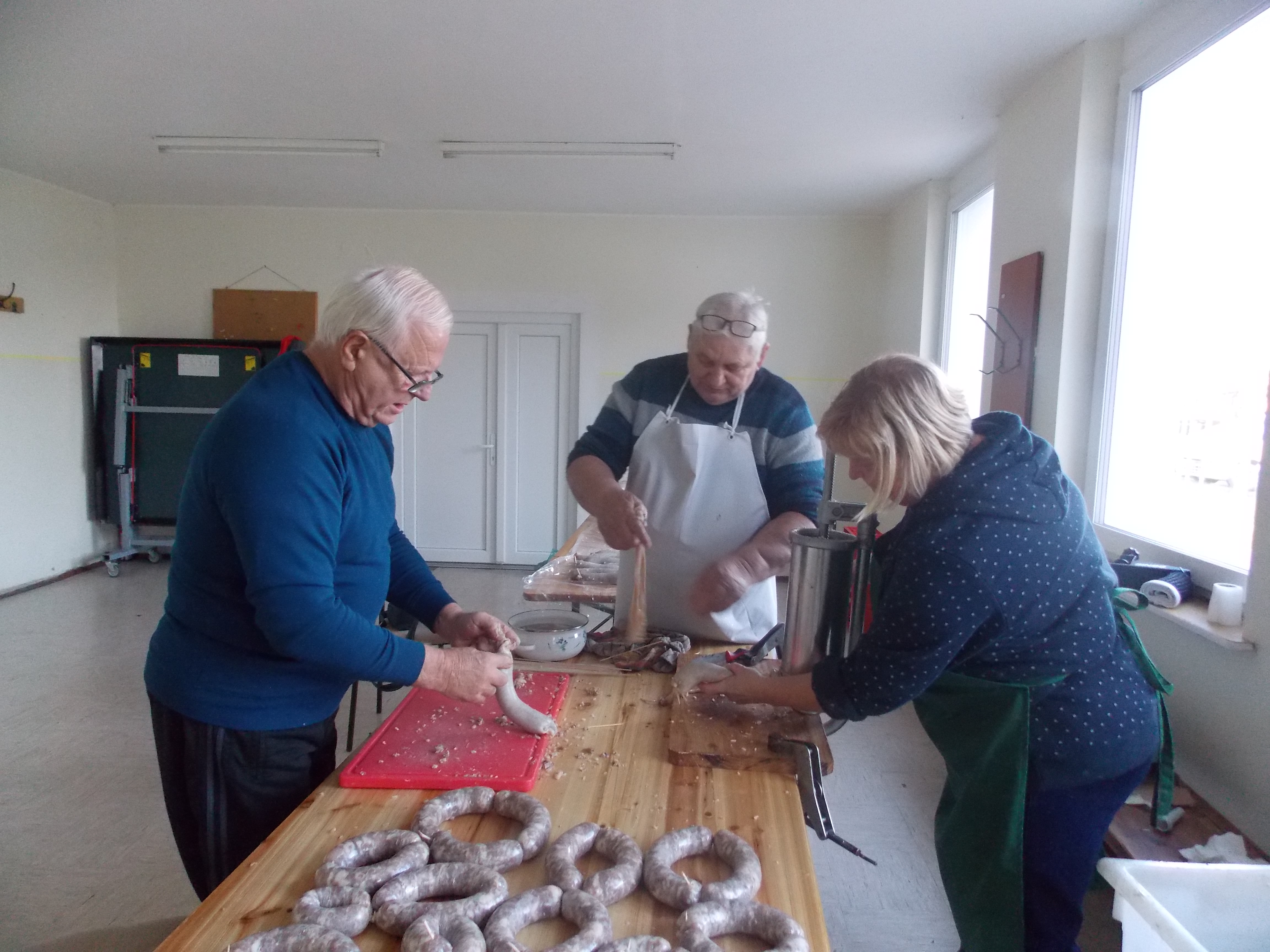 V društvu smo 13.12.2018 priredili koline tako, kot so to počeli naši predniki. Na domačiji Fingušt smo pujsa zaklali, razkosali, naredili kašnate in mesene klobase, pripravili meso za bunke, slanino zmleli za zaseko in ocvirke. Sveže meso smo pospravili v zamrzovalno omaro v naših društvenih prostorih, da bomo imeli zalogo ob naših dejavnostih.