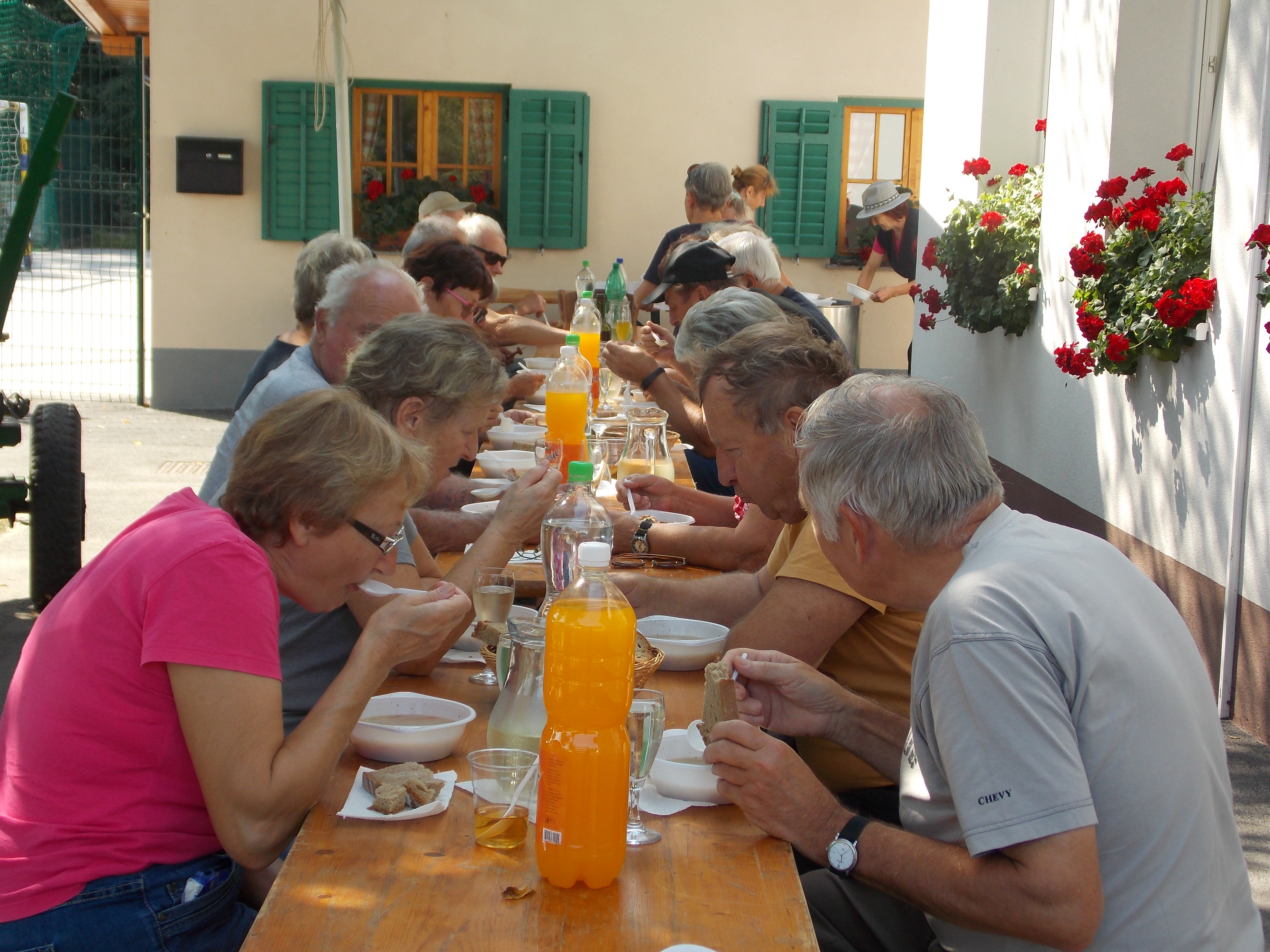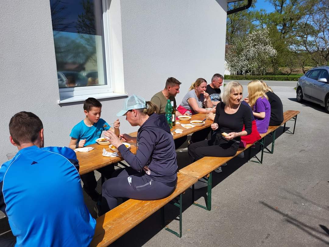 Vreme je bilo krasno, zato smo porabili malo več časa, saj se je bilo zelo prijetno pomenkovati. Ker se je že oglašal želodec, smo se vrnili pred prostore društva , kjer nas je že čakala topla malica in smo se lahko še naprej družili.