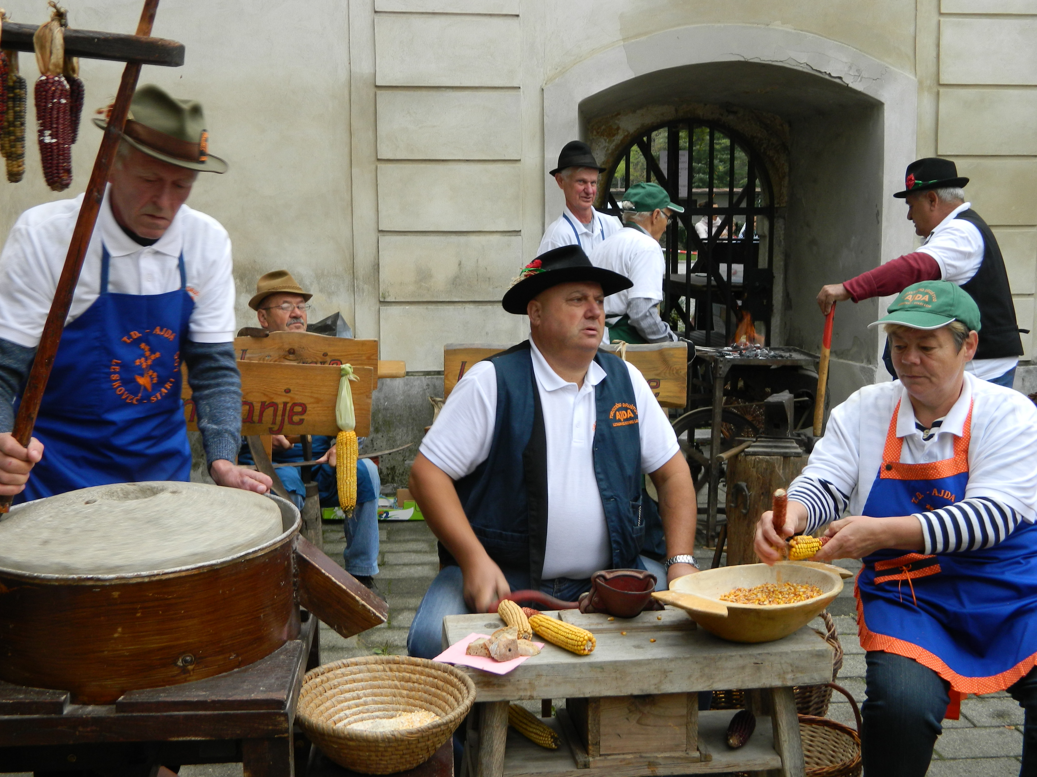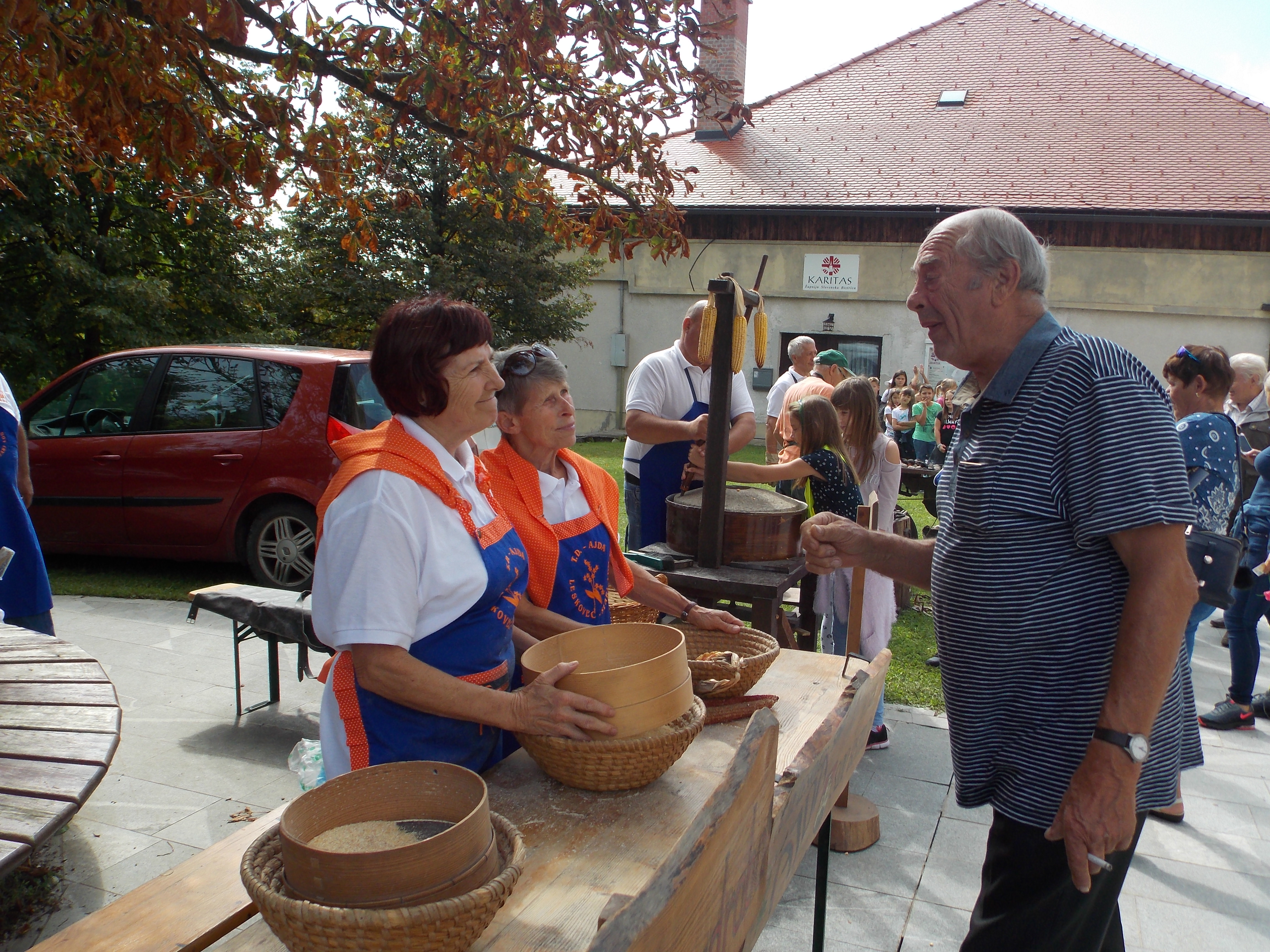 Predstavili smo luščenje, žrmljanje in mletje koruze, kot so to počeli nekoč, da smo dobili moko in koruzni zdrob. Pokazali smo tudi klepanje kose, kovanje in pletenje košar.