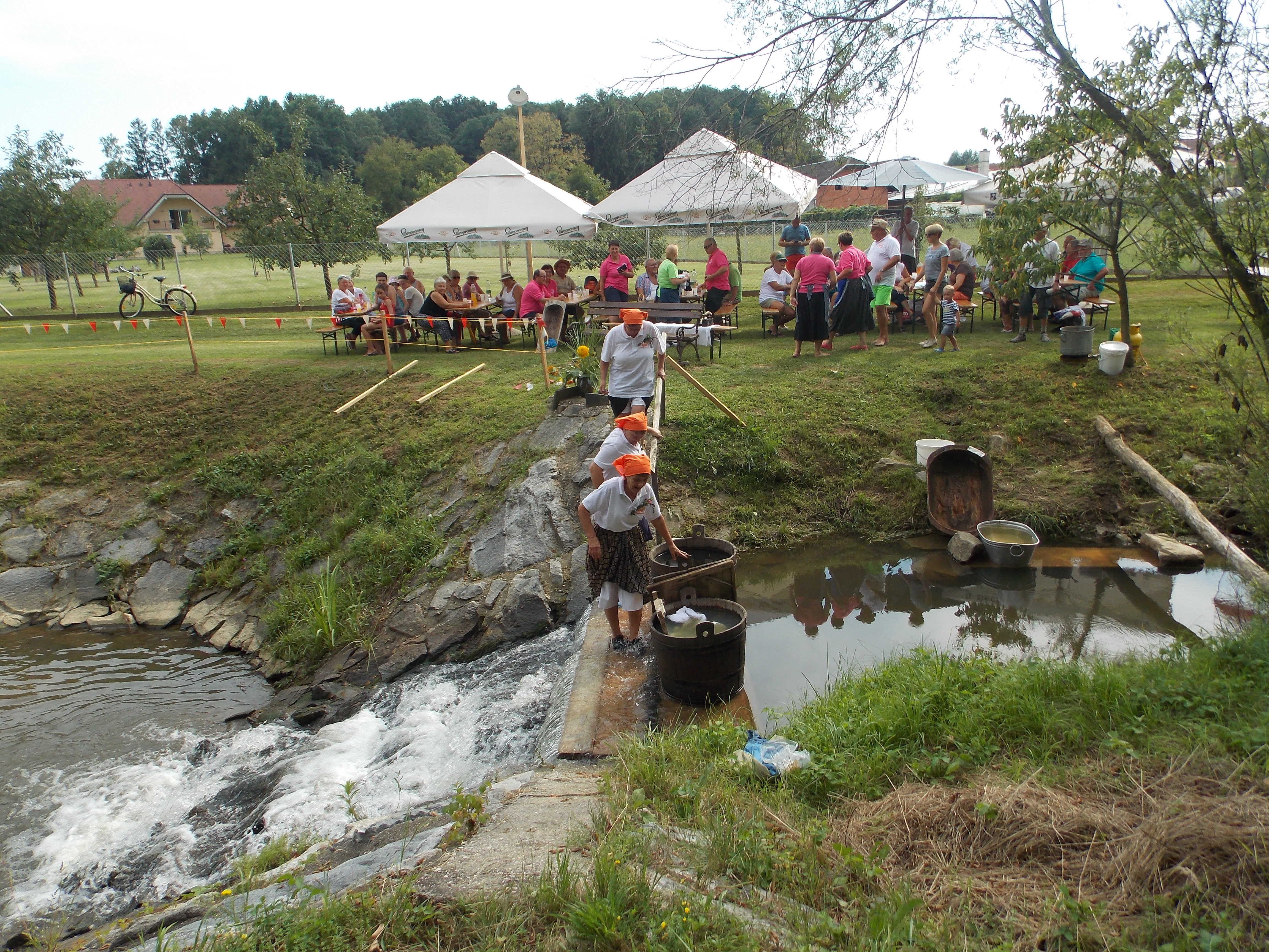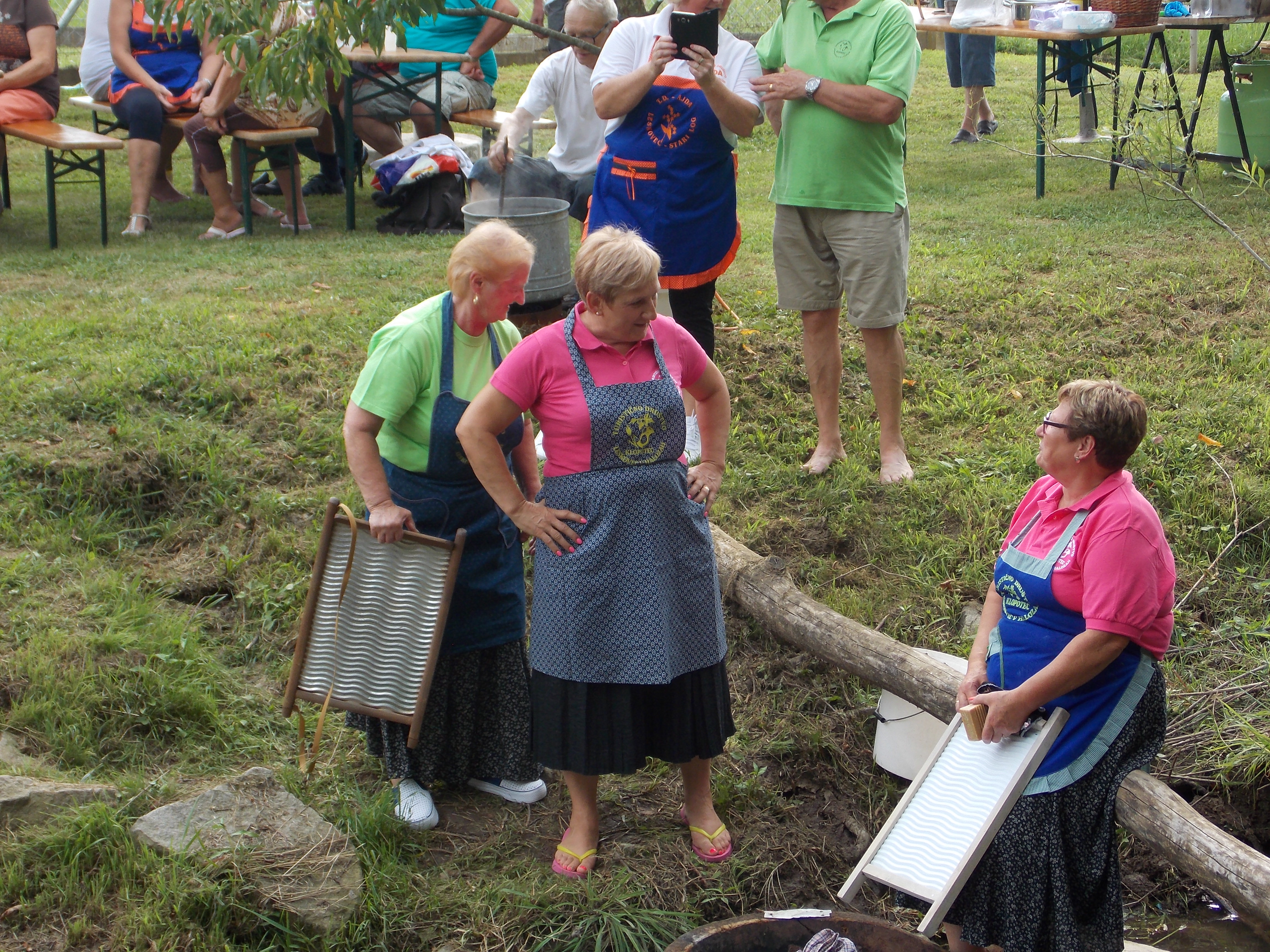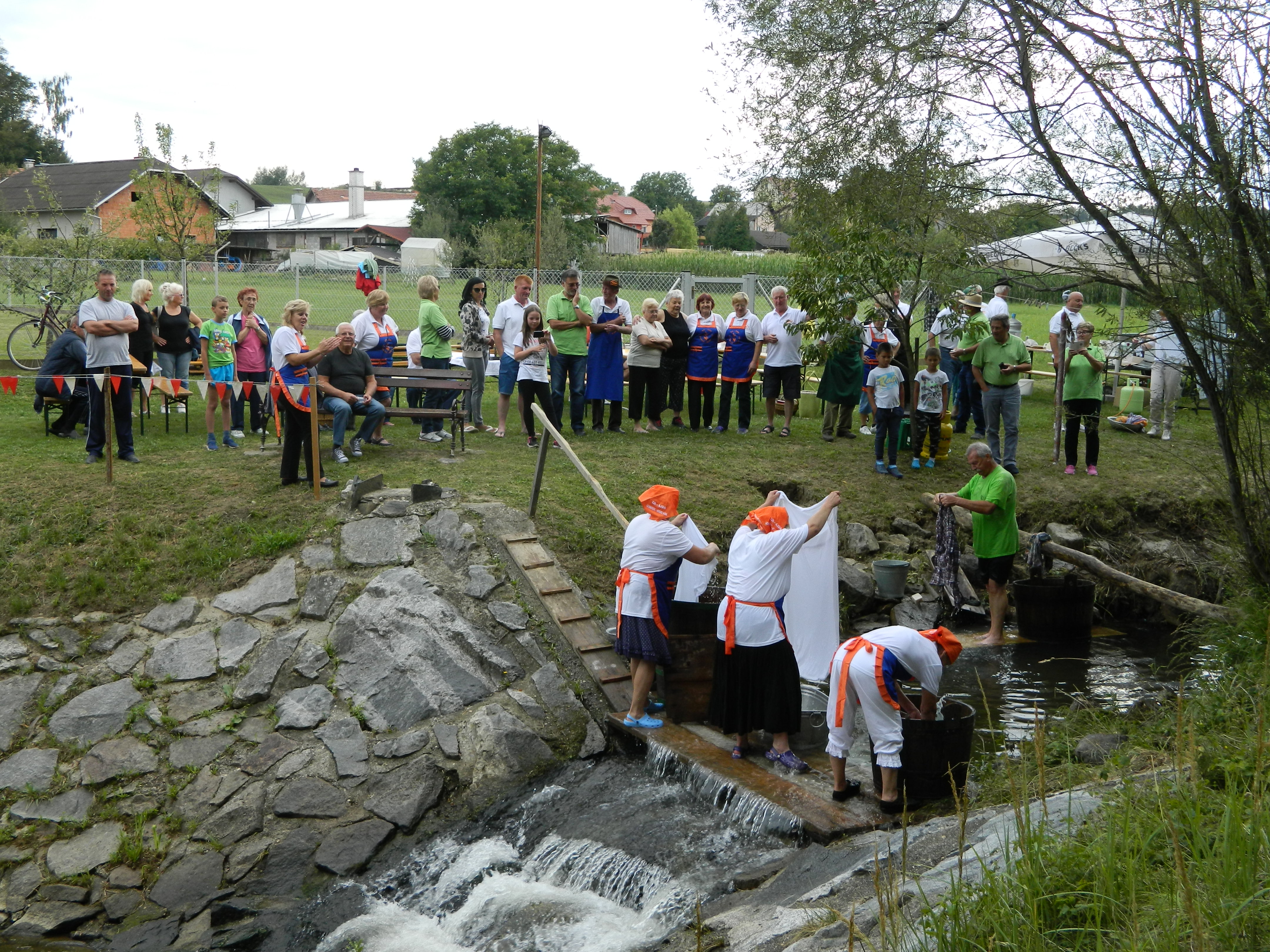 Prikaz pranja perila po starem smo tokrat opravili 15.8.2020 v malo drugačni obliki zaradi »korone«, vendar je bilo kljub temu prijetno. Zbrali smo se kot običajno pri potoku v Leskovcu in oprali nekaj perila z »ribežnom« in milom iz bukovega pepela.