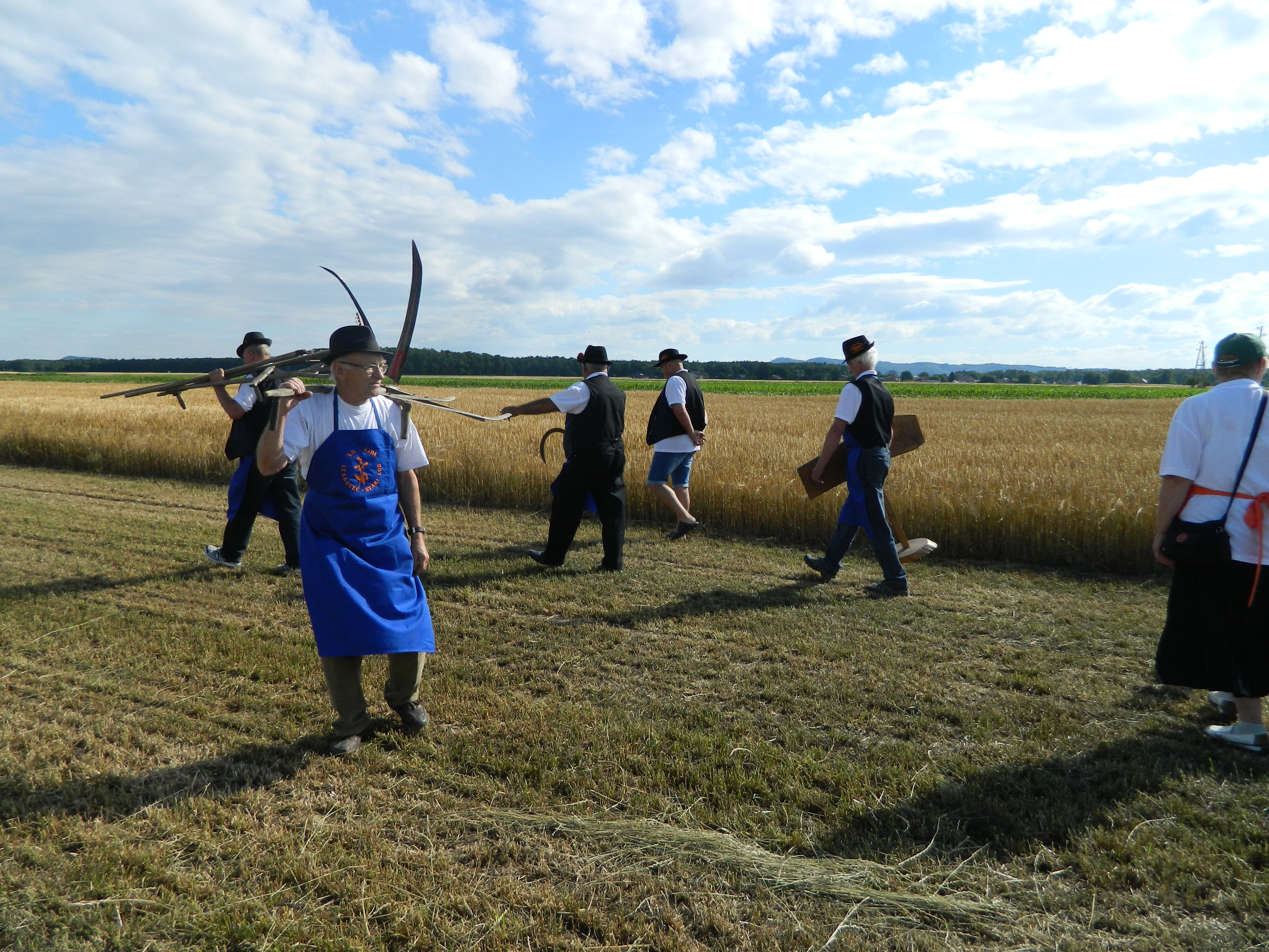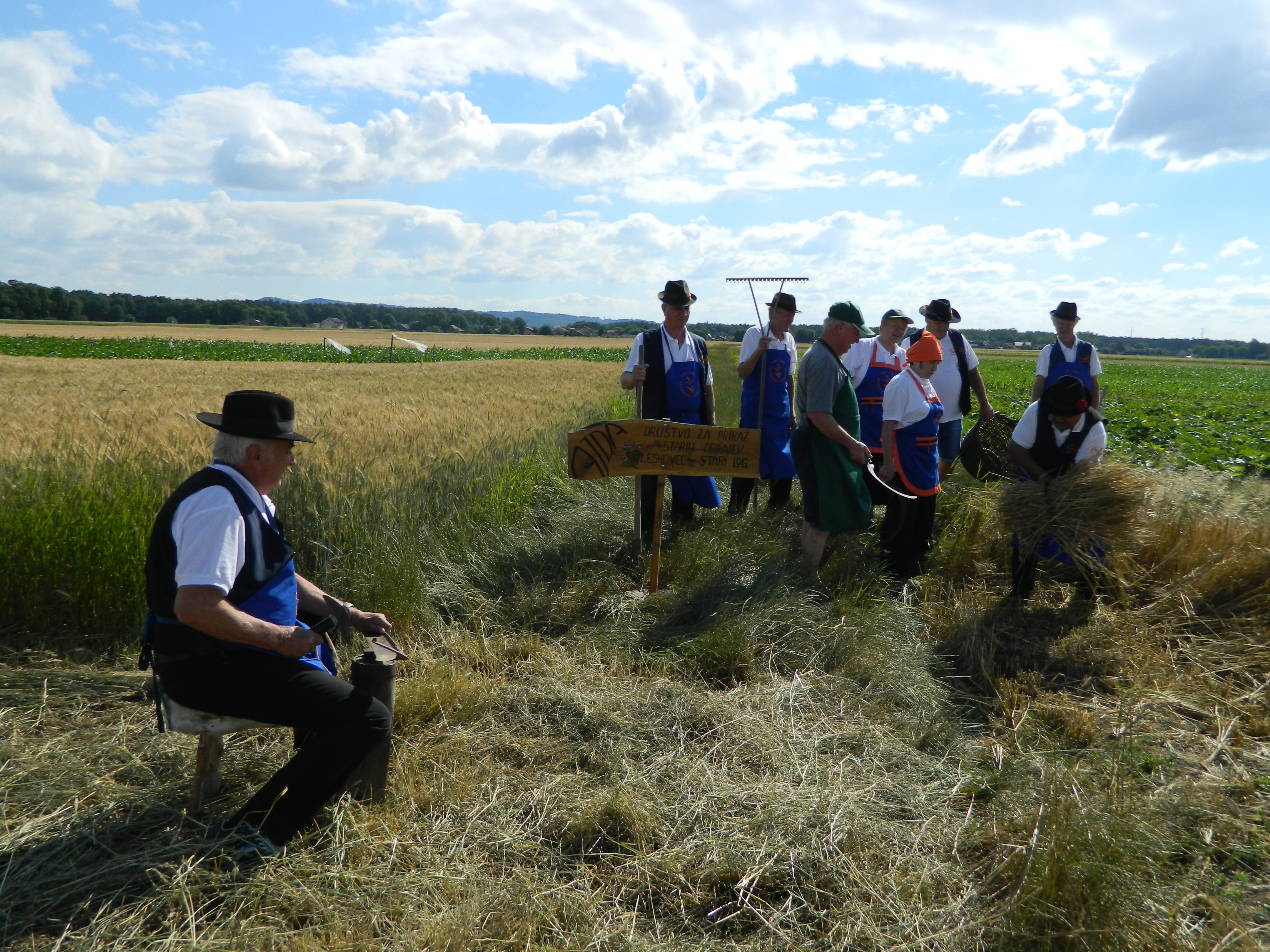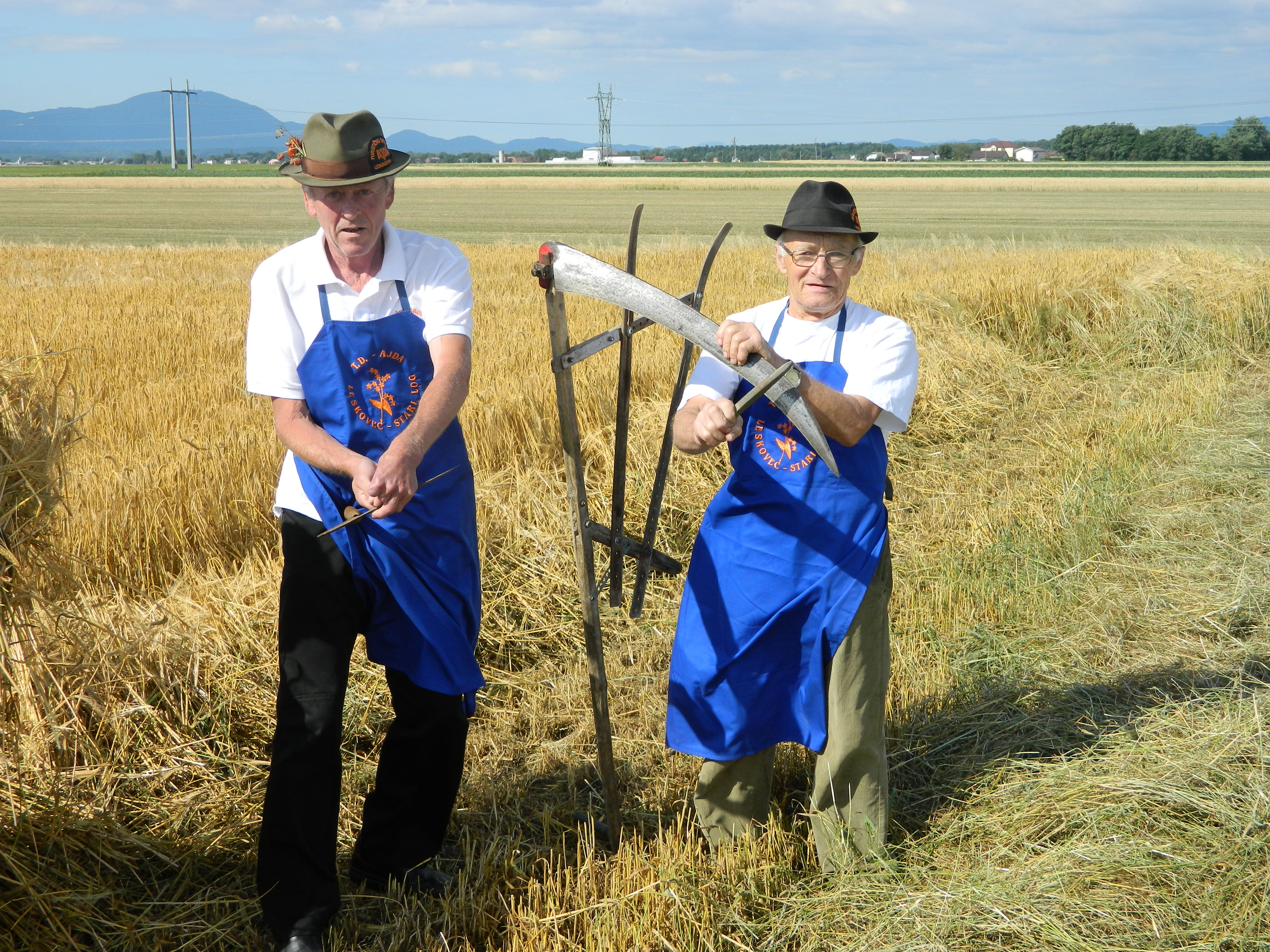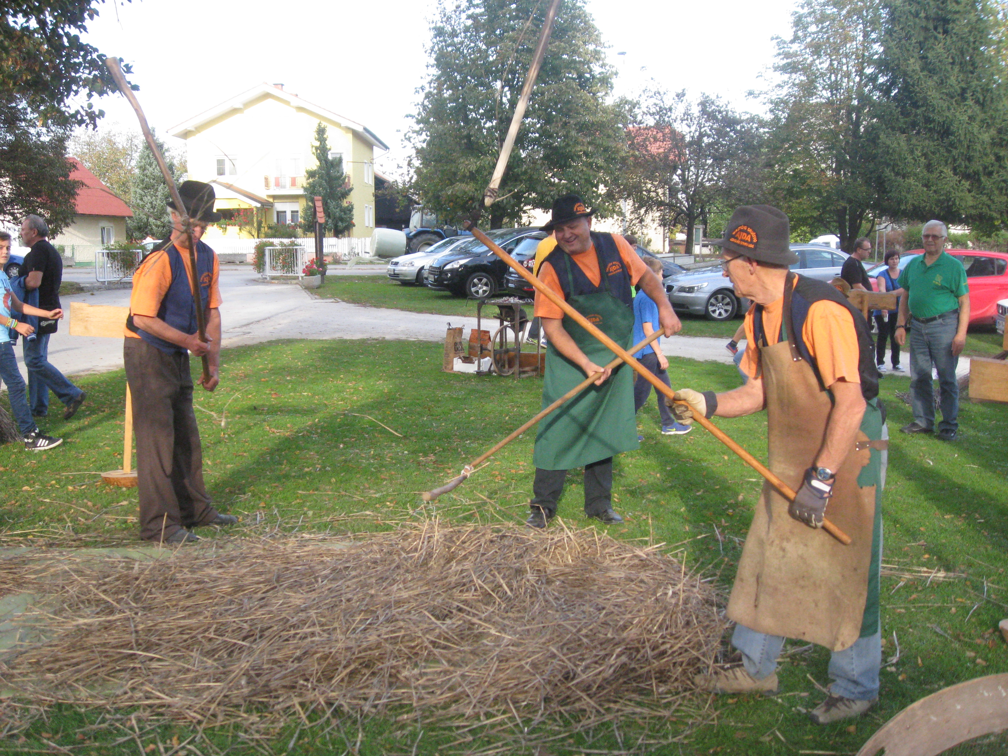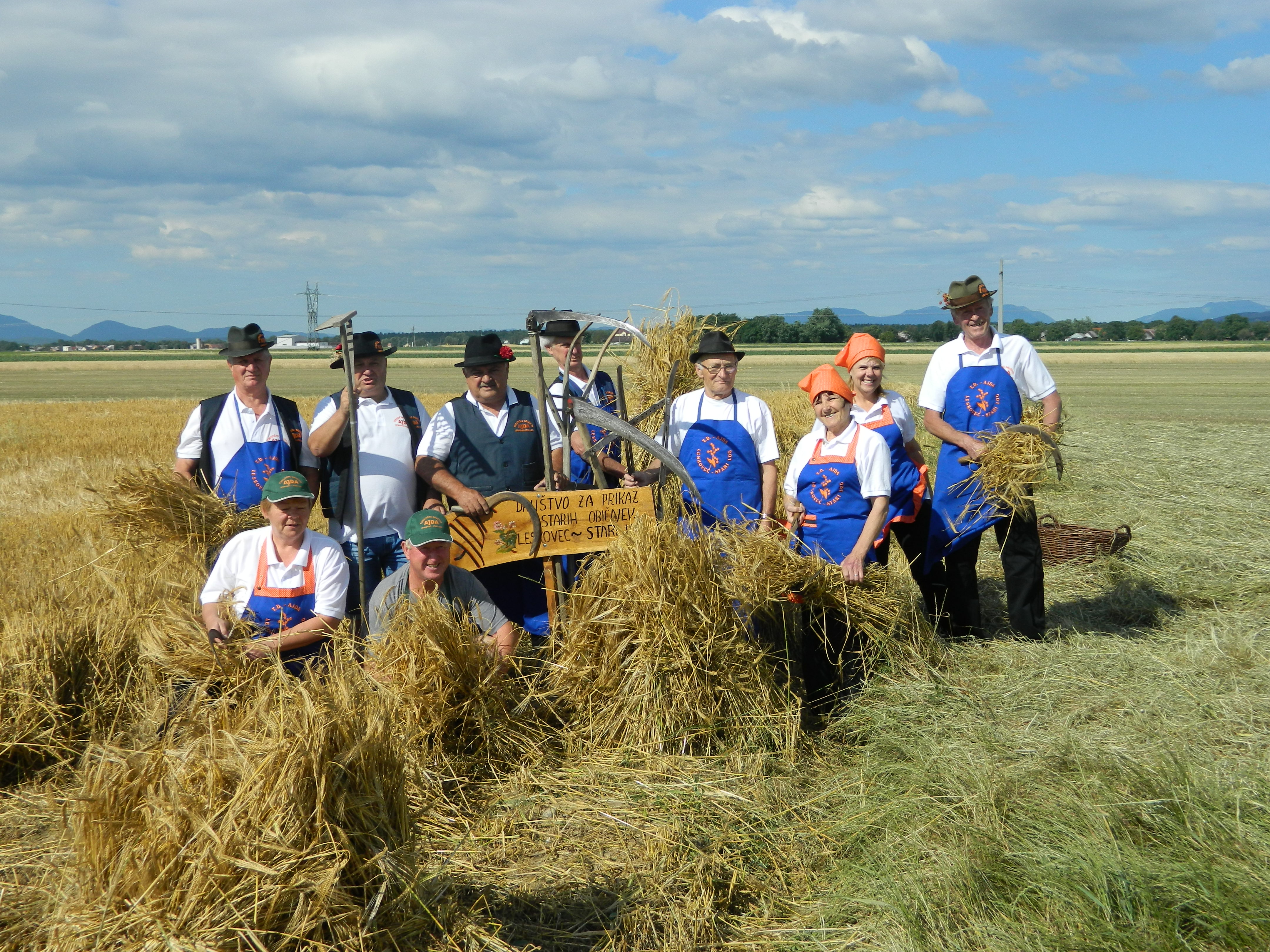 Člani društva AJDA smo 18.6.2017 pripravili prikaz žetve žita po starem običaju. Zbrali smo se na njivi in si razdelili delo. Moški so kosili, ženske so s srpi pobirale klasje in ga vezale v snope, ki smo jih postavili v kopice, da se je zrnje še bolj posušilo.