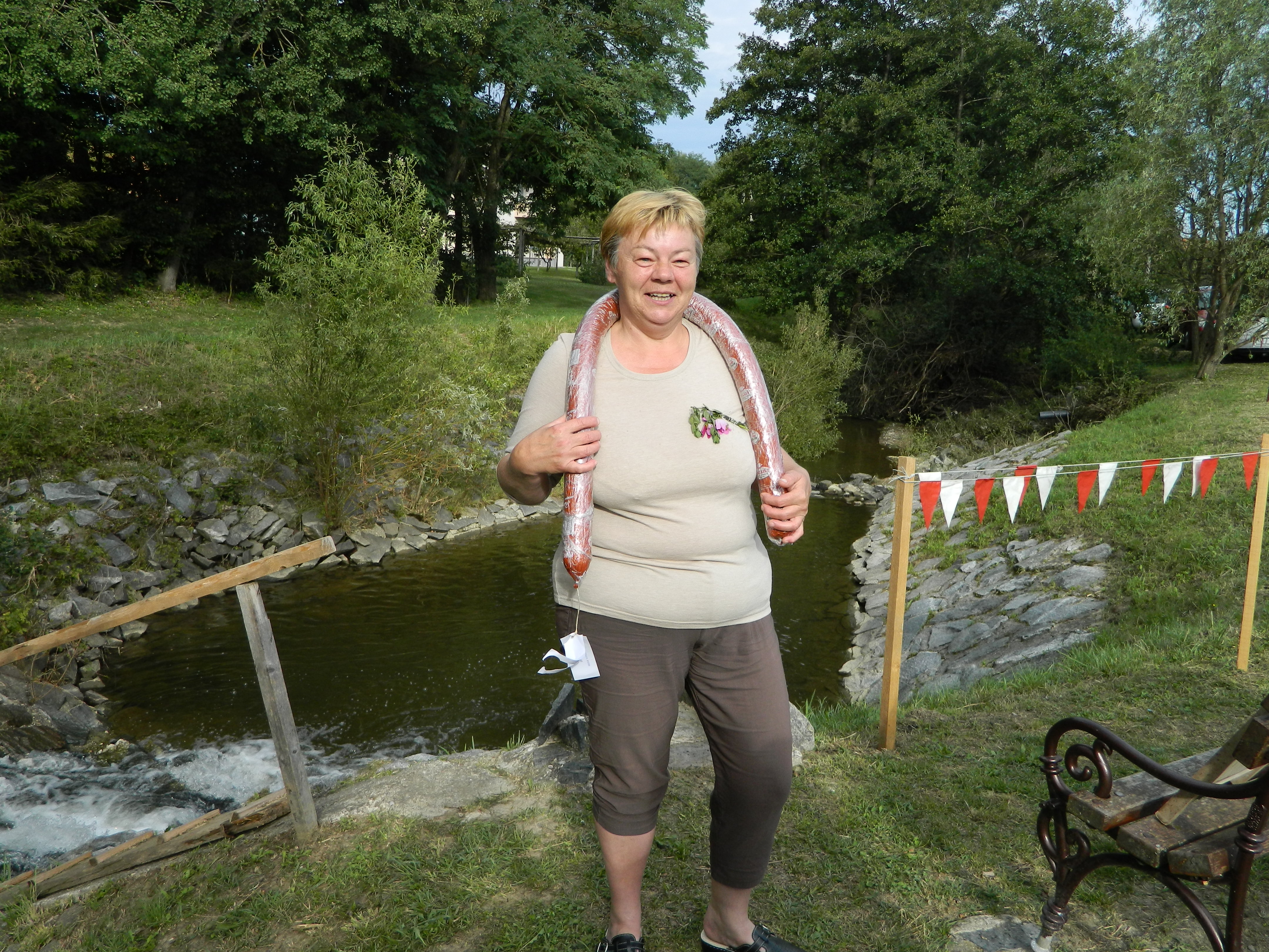 Nato smo organizirali licitacijo salame in tisti, ki je uganil približno dolžino, jo je lahko odnesel domov. Srečna dobitnica Sandra, pa jo je kar pri potoku razdelila med prisotne.