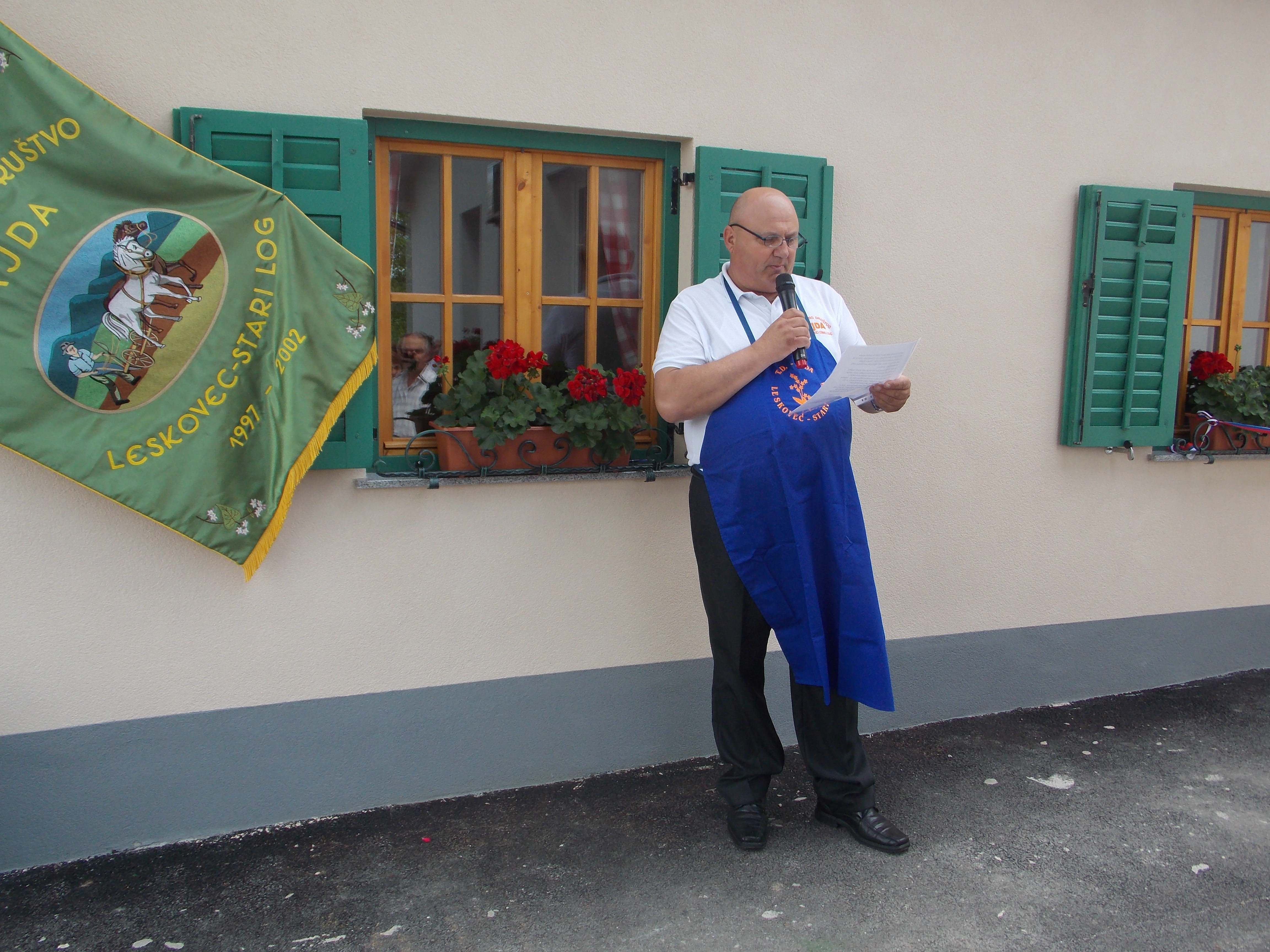 Pripravili smo kratek kulturni program, ki ga je vodila naša članica Alenka Narobe. Sodelovali so pevci iz Društva invalidov Črešnjevec, Ljudski godci KUD Sloga Leskovec-Stari Log in naša člana Andrej Erlač in Mirko Rebernak. Predsednik društva g. Beno Fingušt je pozdravil vse prisotne in se zahvalil vsem, ki so kakorkoli prispevali k našemu "Štiblcu". Prisotne sta pozdravila tudi g. Ivan Žagar in g. Lepold Turk. Trak sta prerezala predsednik društva g. Fingušt in župan g. Žagar, nato pa smo tudi uradno odprli vrata našega "Štiblca", da so si gostje lahko ogledali tudi notranjost.