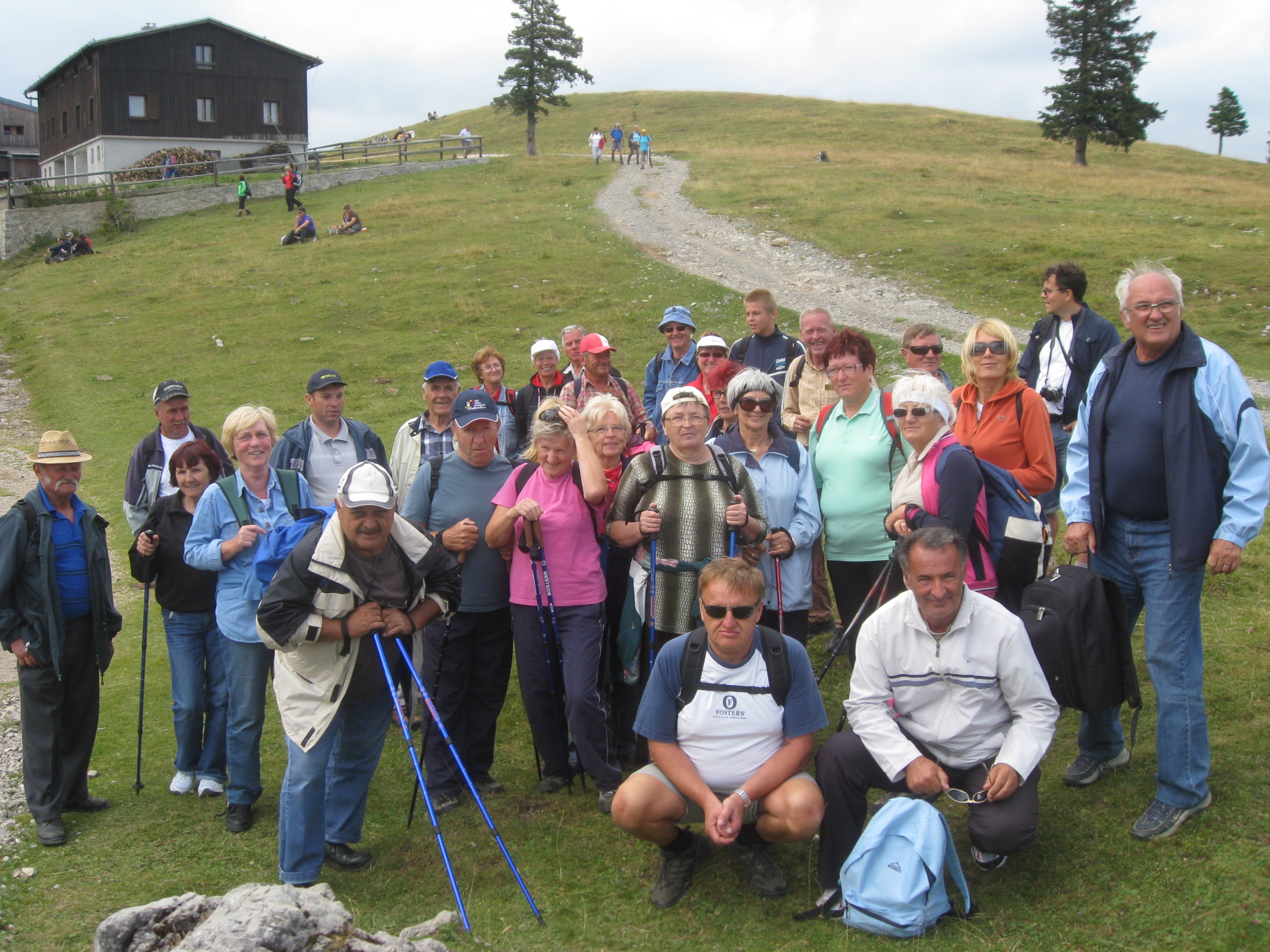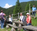 Skupinski posnetek ob prihodu na startno mesto na Pokljuki, kjer je predsednik povedal nekaj vzpodbudnih in zahvalnih misli. Kozarec hladnega piva nam je po dveh dneh potepanja po planinah zelo dobro del.