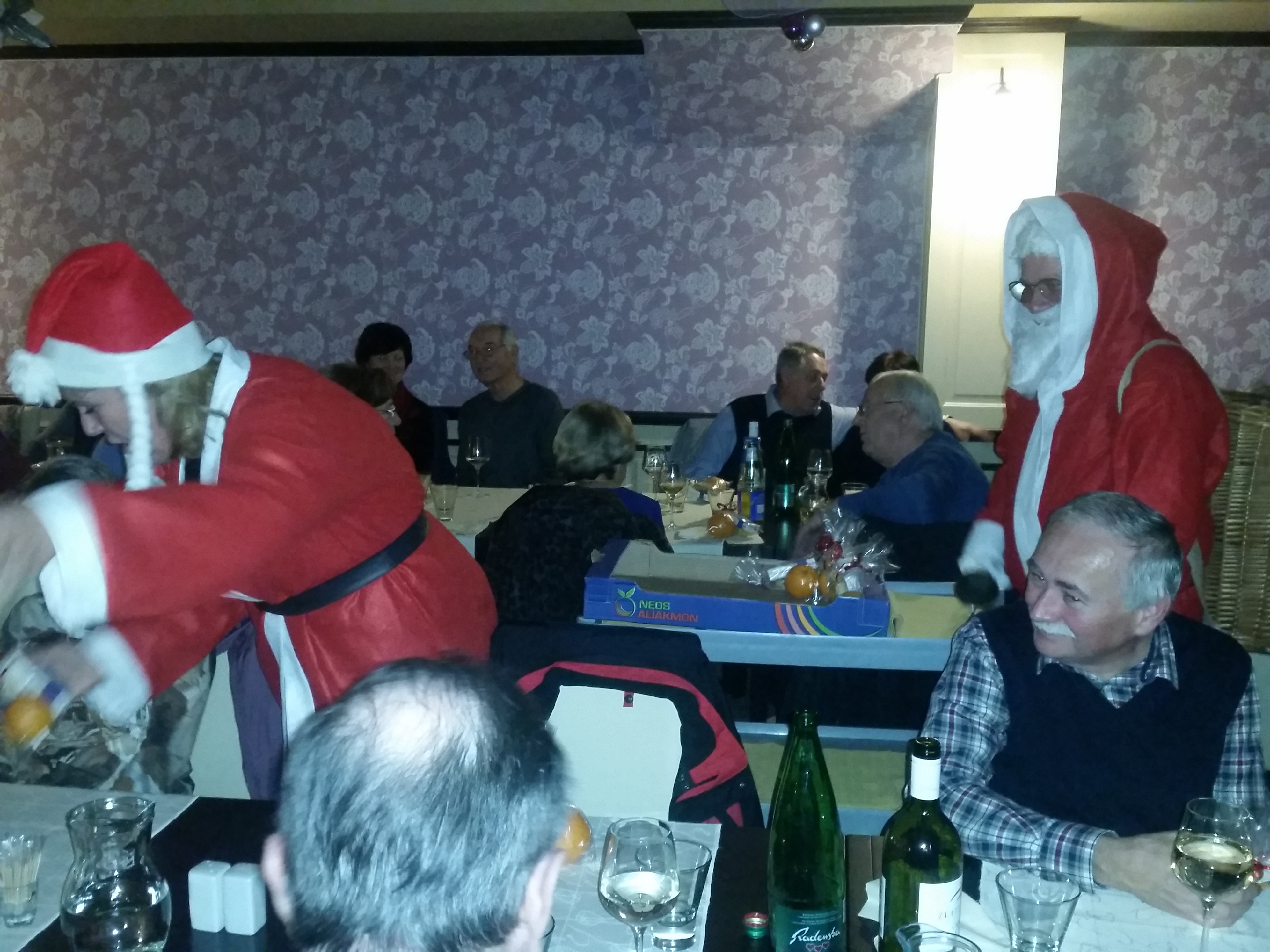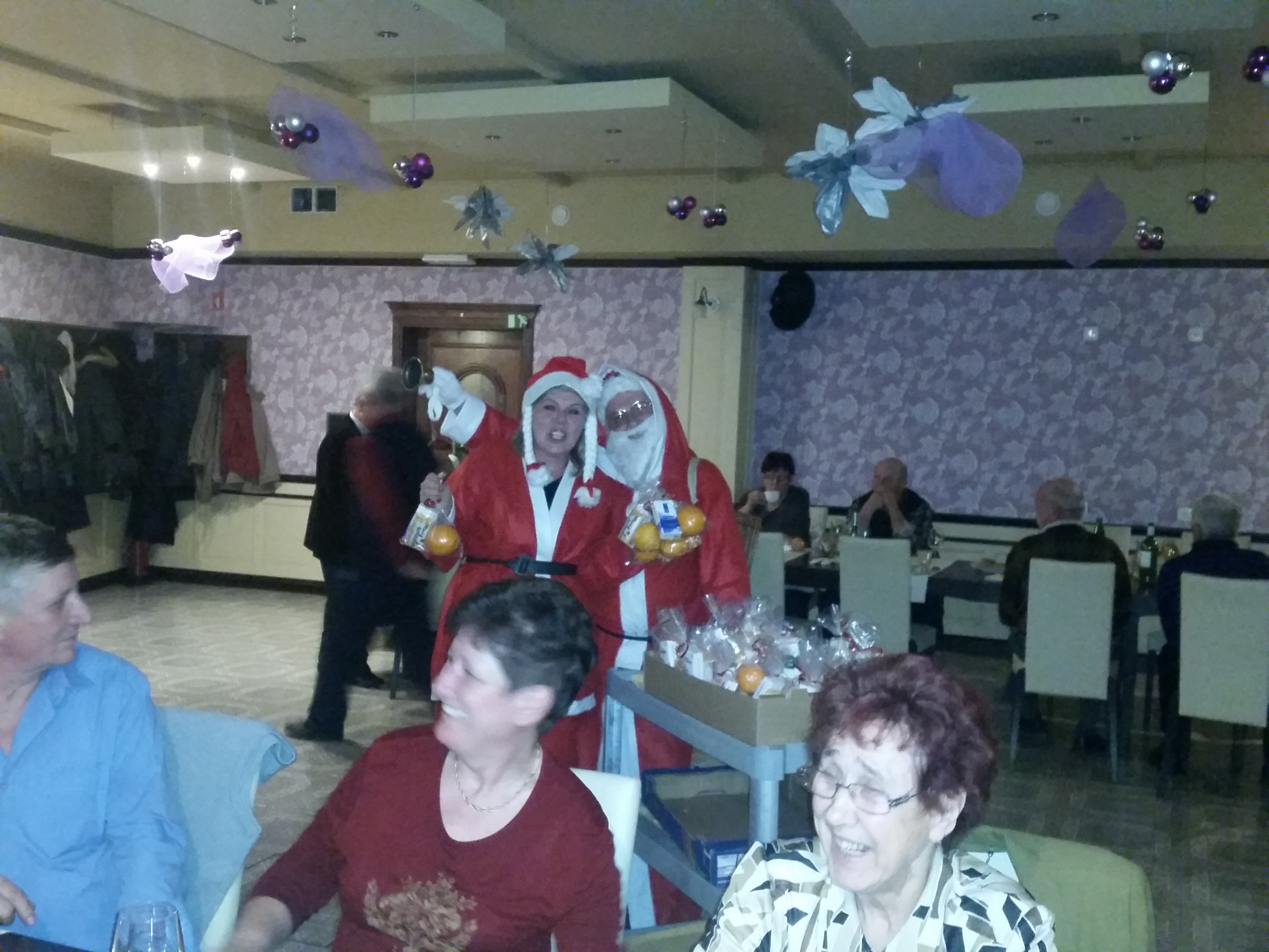 Vendar pa tudi letos ni šlo brez obiska Božička, ker pa je bilo potrebno obdarovati več kot sto udeležencev, mu je tokrat pomagala tudi "gospa Božičkova". V glavnem ob prijetnem druženju čas hitro beži, zato se ob odhodu niso poslavljali, bili so praznično razpoloženi, z željo, da se v letu 2017 spet srečajo na prvi organizirani prireditvi, ob Dnevu žena.