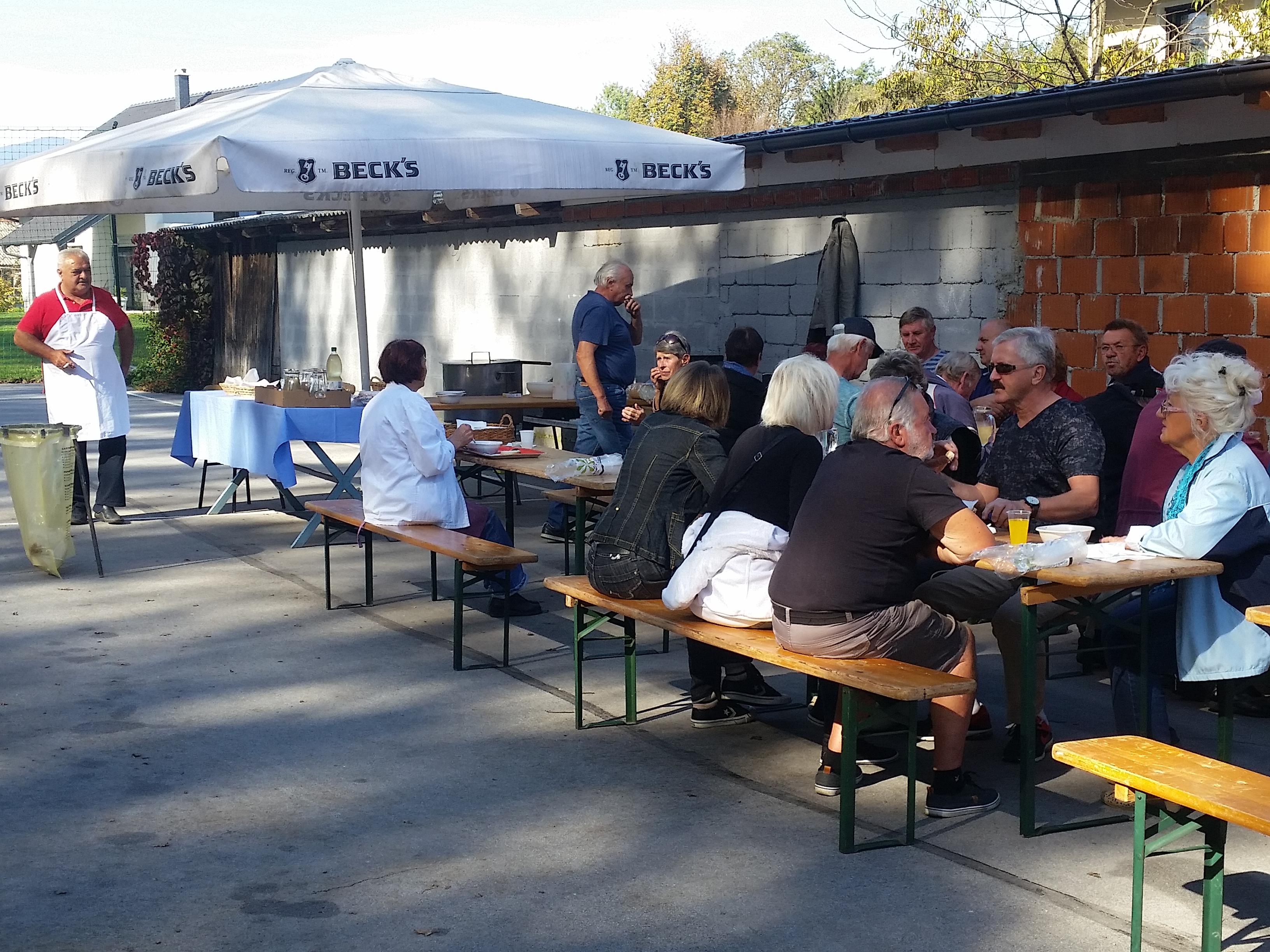 Ob lepem vremenu se je zbralo na igrišču skoraj 80 članov. Ponujena je bila dobra kapljica in domač golaž, katerega sta skuhala priznana mojstra v kuhanju golaža člana DU Angelca in Franci Pišek. Za prijetno vzdušje ob glasbi je poskrbel predsednik društva Ajda Beno Fingušt. Vso organizacijo dogodka pa je prevzel predsednik DU Alojz Gačnik.